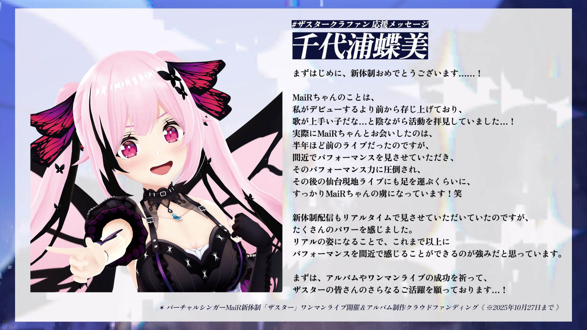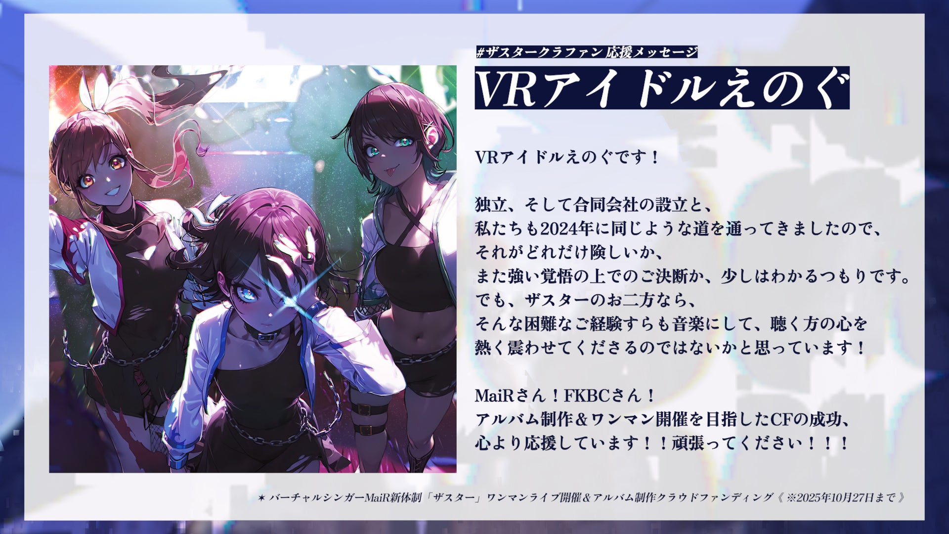 ※2025年10月27日追記ザスターです!たくさんのご支援や応援のメッセージをありがとうございます!