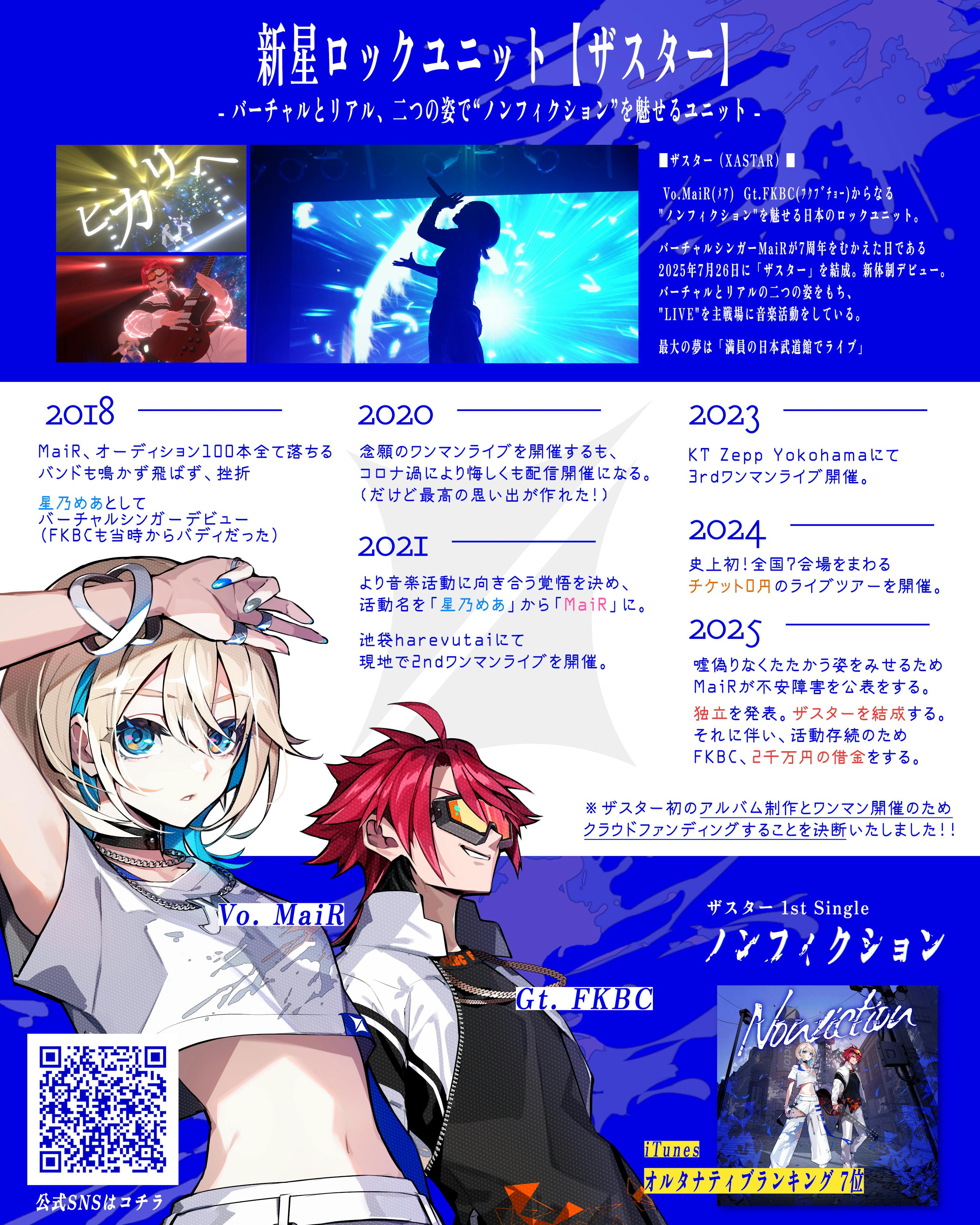 CFページ、ライブ映像、MV、ザスターの自己紹介資料、どれかひとつでいい。