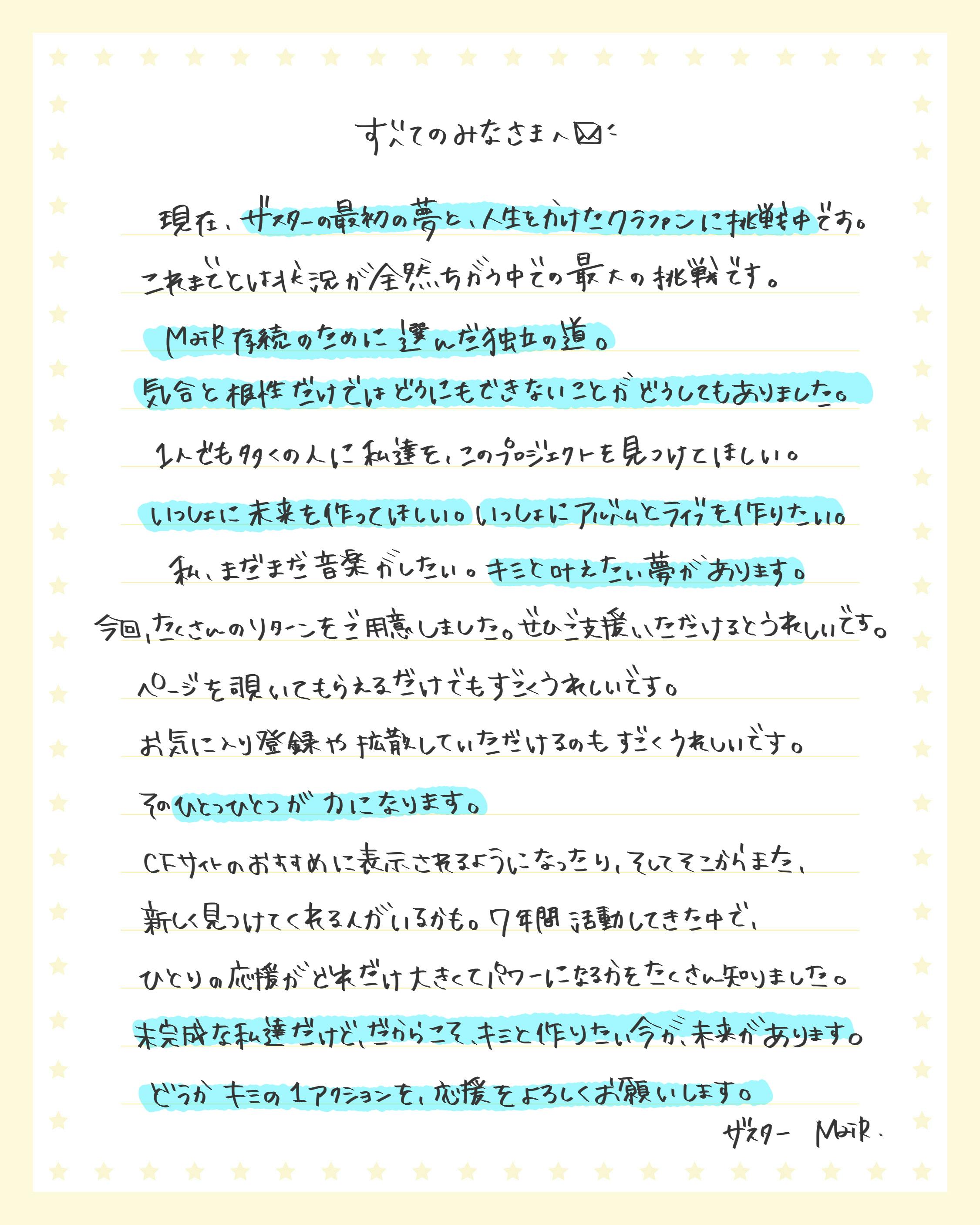 一度でもMaiRの音楽に触れてくれた全てのみなさんへ。