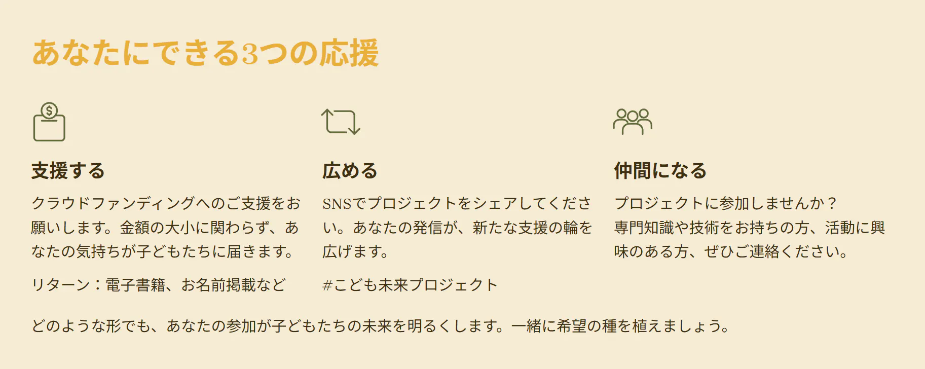 あなたが参加することで実現します