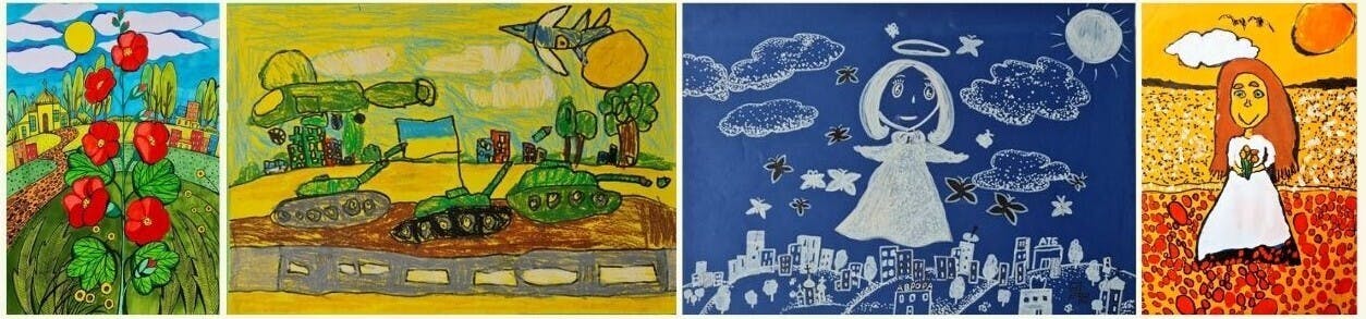 日本チェルノブイリ連帯基金が侵攻以降に避難した子どもたちから送られてきた絵を中心に