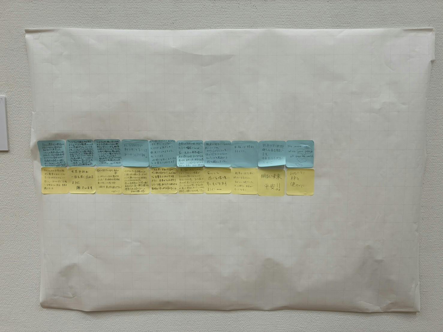 ウクライナの子どもたちへのメッセージを付箋紙2枚にわたって書く人もいました。