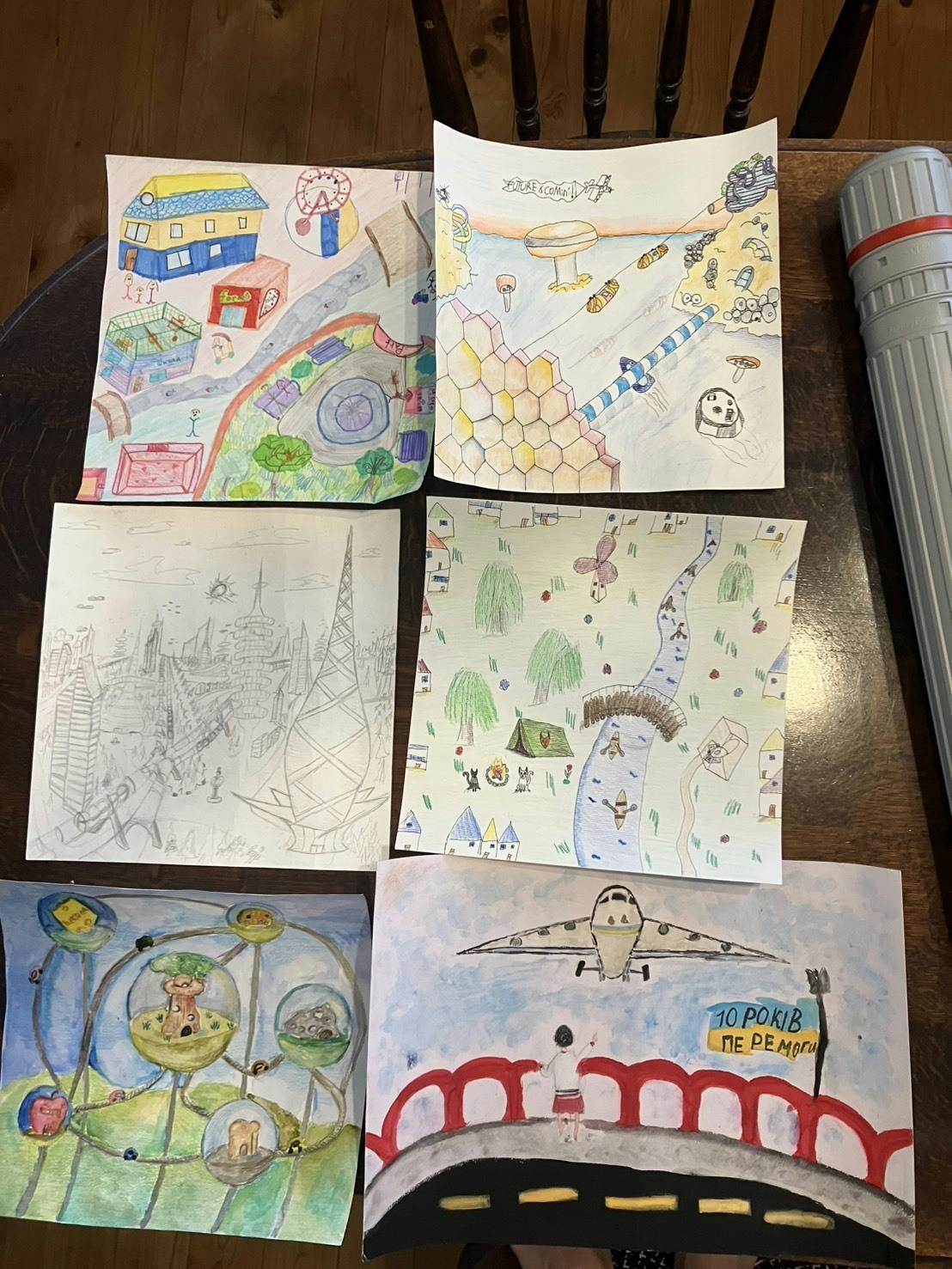 戦争で街を失ったウクライナの子どもたちが、「未来のまちはこうあってほしい」と描いた絵は、どれも希望に満ちあふれていました。