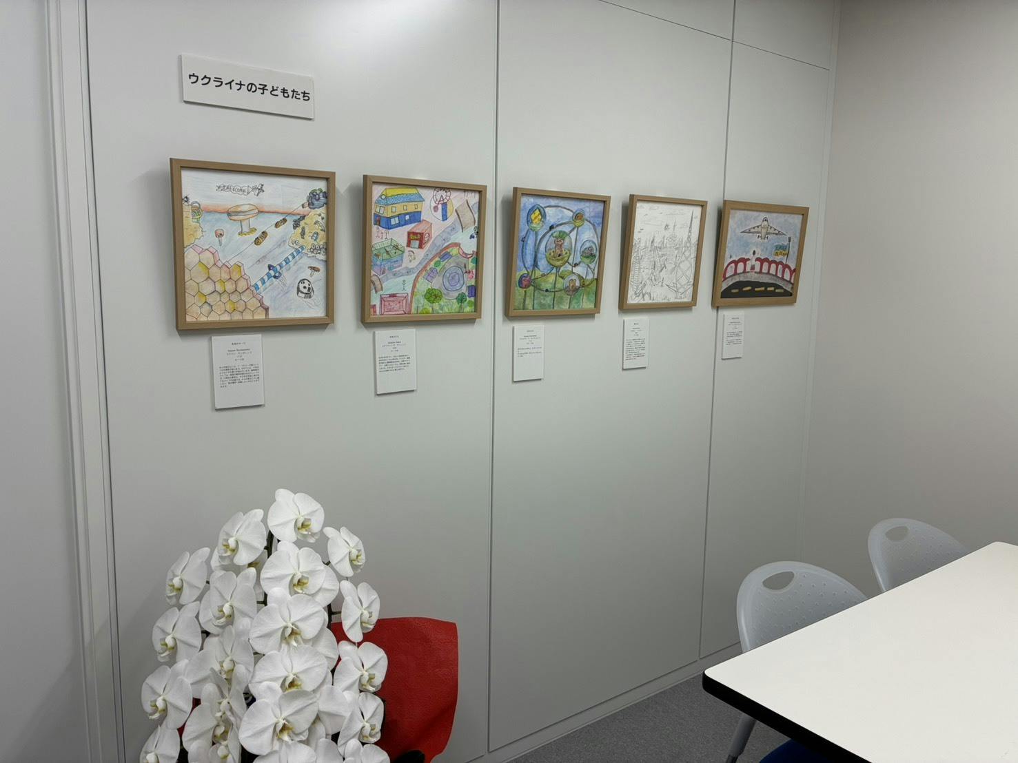 そして絵画展終了して2日後にはウクライナの子どもたちの絵が飾られて社員の皆さんに見てもらい、ウクライナの子どもたちに寄り添った感想を多くいただきました。