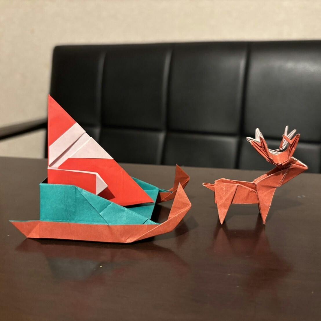 皆さんの温かい気持ちがこもったサンタやトナカイの折り紙もXmasカードに添えて送ります。