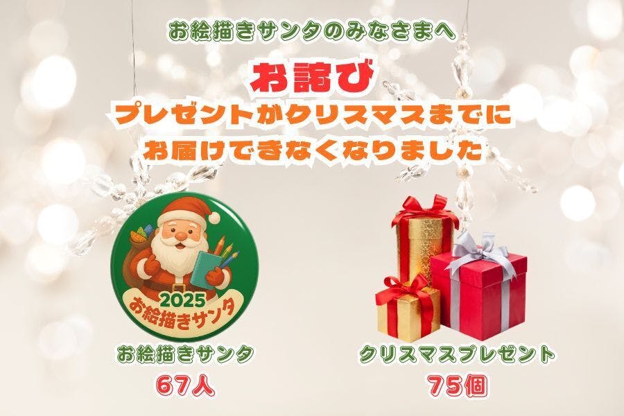 それでもクリスマスには、お絵描きサンタを購入していただいた皆さまの想いを伝えたいと考え、目録と共にお絵描きサンタの皆様からのメッセージ募集することにいたしました。