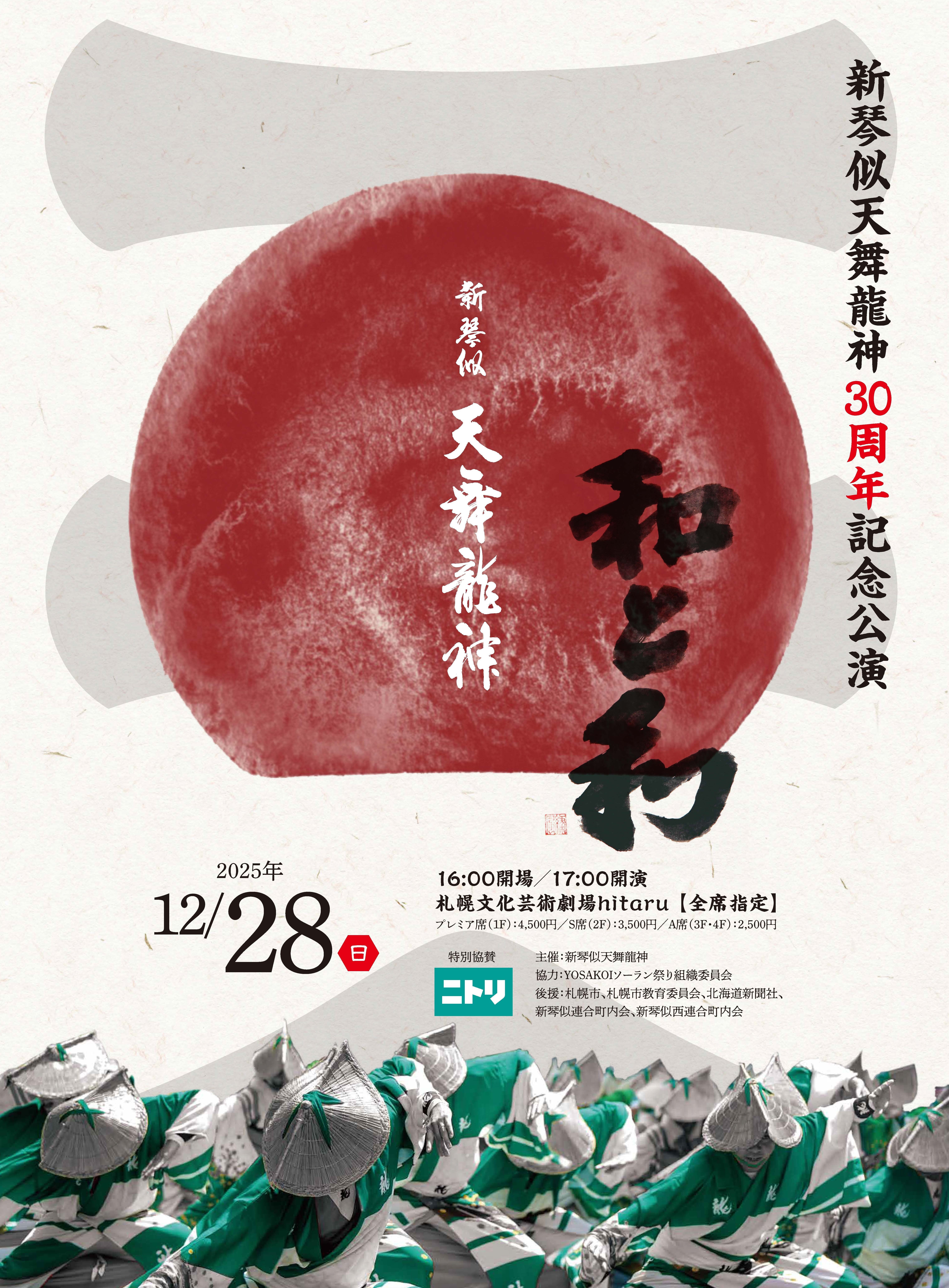 2025年12月28日、札幌文化芸術劇場hitaruにて【新琴似天舞龍神30周年記念公演】 を開催します。