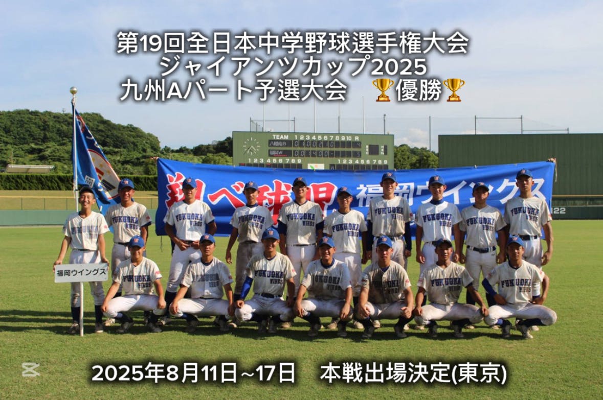 このたび、福岡県内の予選を勝ち抜き、全国約1600チームの頂点を決める「第19回全日本中学野球選手権大会ジャイアンツカップ2025」への出場権を獲得しました。