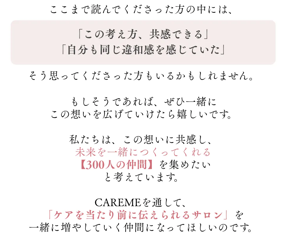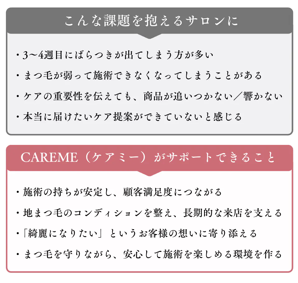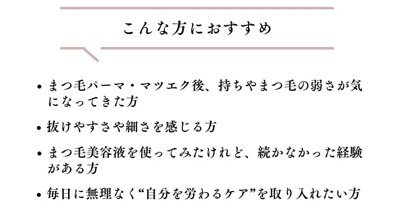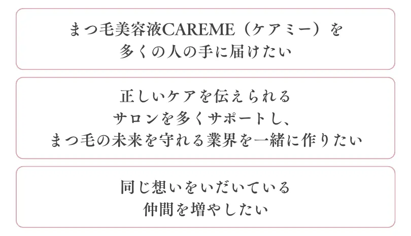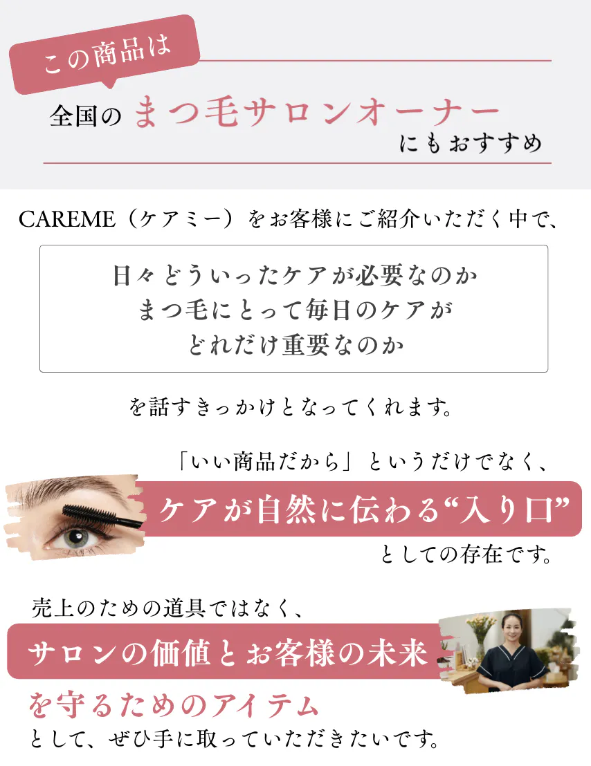 CAREMEは、まつ毛だけでなく、日々忙しく過ごす女性の気持ちにも寄り添う美容液です。