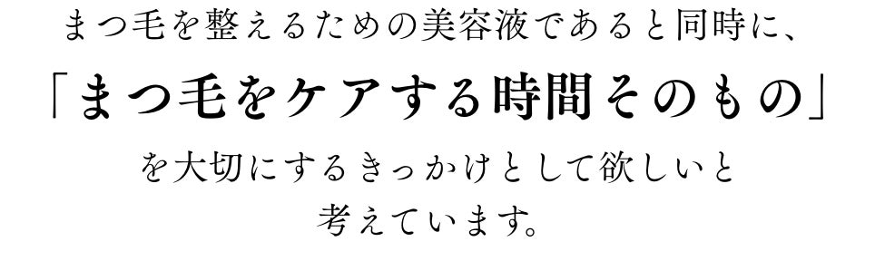A. 個人差はありますが、1ヶ月程度の継続使用でまつ毛のばらつきや乾燥が気になりにくくなったというお声をいただいています。あくまでまつ毛を健康に整えることを目的としたアイテムのため、即時的な効果よりも日々のケアの積み重ねが大切です。