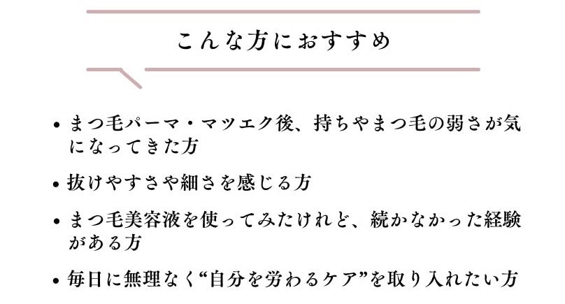 A. 本製品は大人の女性のまつ毛ケアを目的に開発されたものです。成分は低刺激ですが、お子様へのご使用は避けてください。