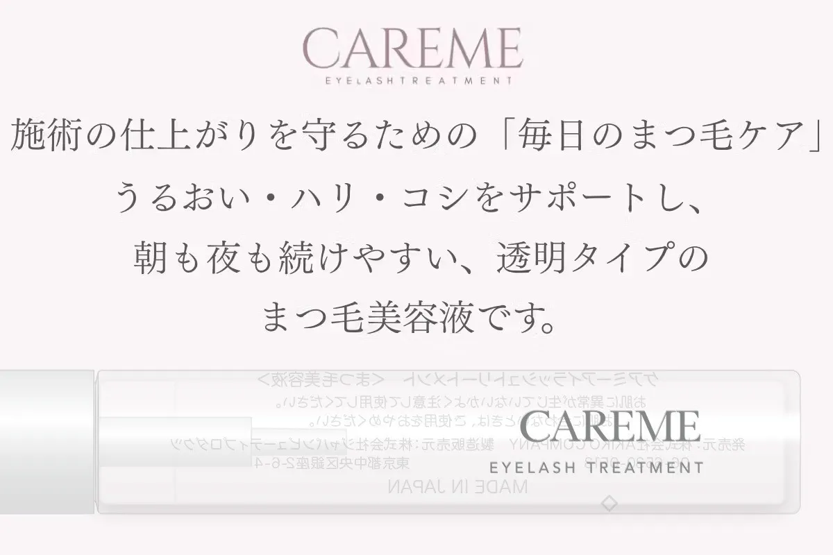 CAREMEは、まつ毛だけでなく、日々忙しく過ごす女性の気持ちにも寄り添う美容液です。
