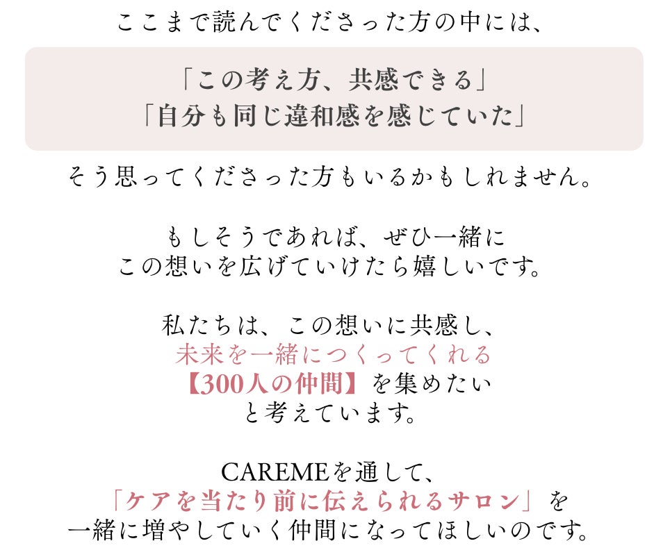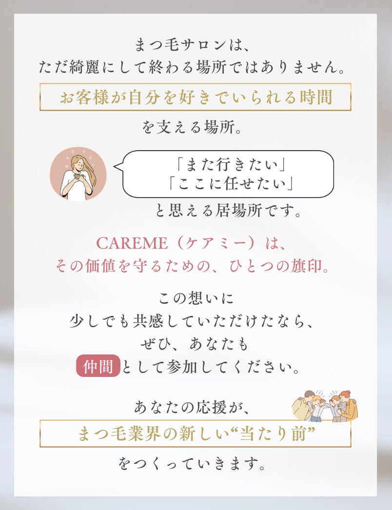 CAREMEは、まつ毛だけでなく、日々忙しく過ごす女性の気持ちにも寄り添う美容液です。