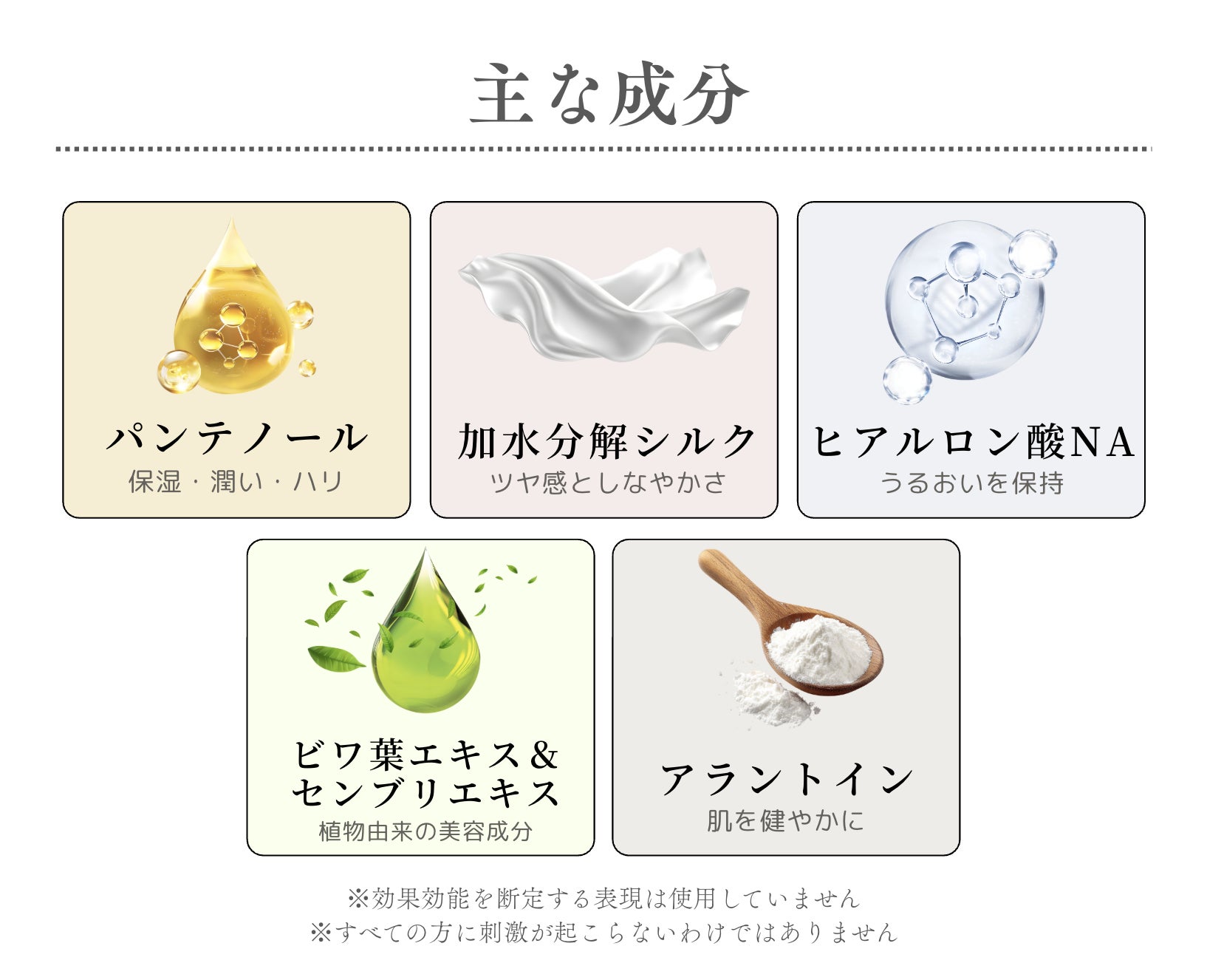 水/グリセリン/BG/エタノール/カルボマー/フェノキシエタノール/水酸化Na/キサンタンガム/クエン酸Na/ジラウラミドグルタミドリシンNa/加水分解ケラチン(羊毛)/レモングラス葉/茎エキス/ローズマリー葉エキス/グリシン/セイヨウアカマツ球果エキス/パンテノール/ピロ亜硫酸Na/フユボダイジュ花エキス/カミツレ花エキス/ビルベリー葉エキス/デキストラン/チャ葉エキス/塩化亜鉛/ビオチノイルトリペプチド-1/アセチルテトラペプチド-3/アカツメクサ花エキス