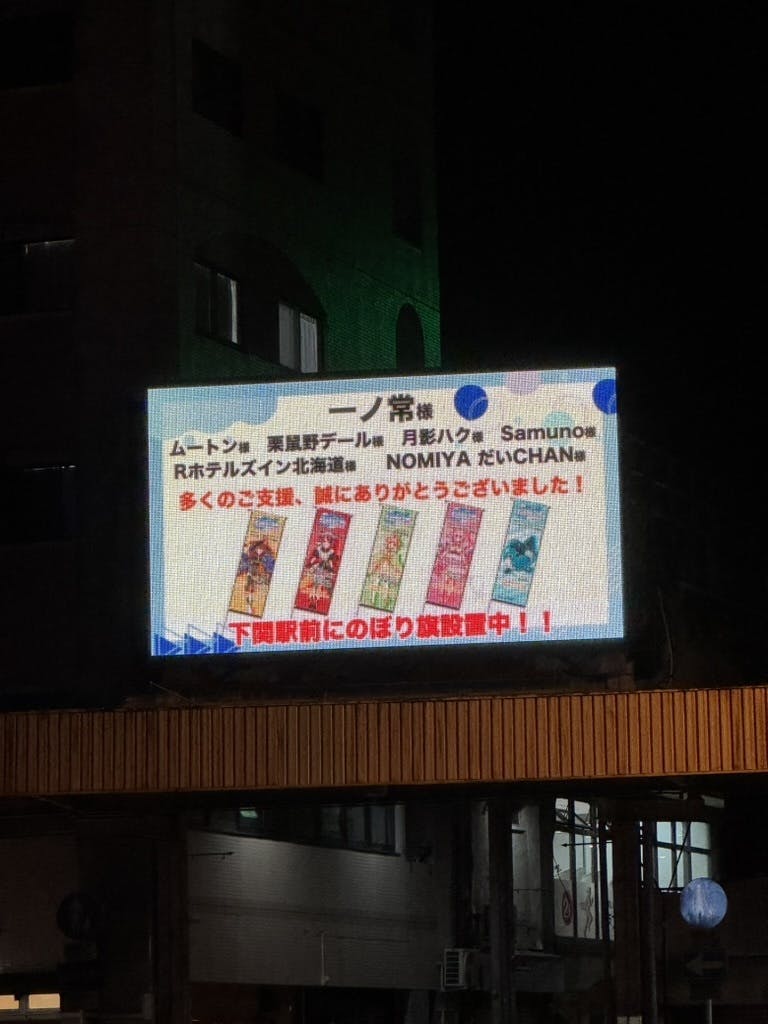 あまりサブカル系の催し物がない下関の街をみなさまのご支援で活気ある姿に彩りたいと思います!のぼり旗はVTuber9種類+下関市公式キャラクター「せきまる」1種類の9種類 計10種類、ご支援者様のお名前入りのぼり旗を駅前などに設置します。