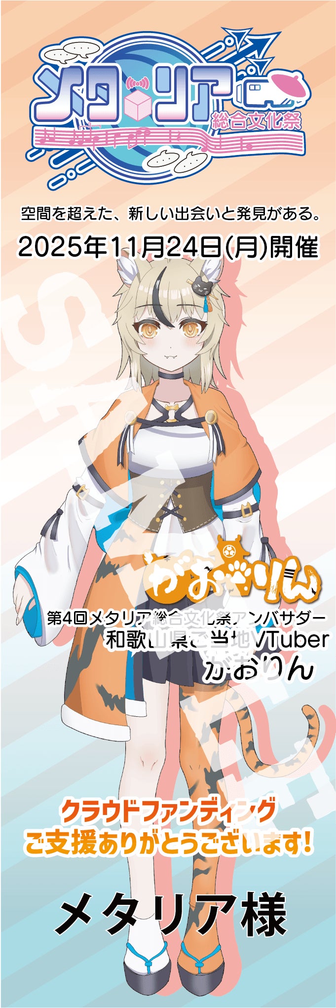 2025/10/31 18:05公式サイトにてグッズ予約販売中!!クラファン報告配信でもお知らせしていたグッズを販売しております!【本日23:59まで】のご注文は在庫が確実にあります。明日以降のご注文は在庫なくなり次第終了となりますので、ご購入希望の方は本日中にご注文ください!!商品は...★パンフレット★クリアファイル★缶バッジ2種類セット★トートバッグ★VTuberシルエットデザインTシャツ★メタリアロゴデザインTシャツ★フォトフレーム風アクリルキーホルダー★グッズセットグッズの詳細、ご注文は公式ページをご覧ください!https://www.metareafes.com/goods2025▼アクキーデザイン案※グッズの販売収益は全て文化祭の運営費用に充てますので、在庫には限りがあることご了承ください。 もっと見る9月5日〜16日のご支援報告