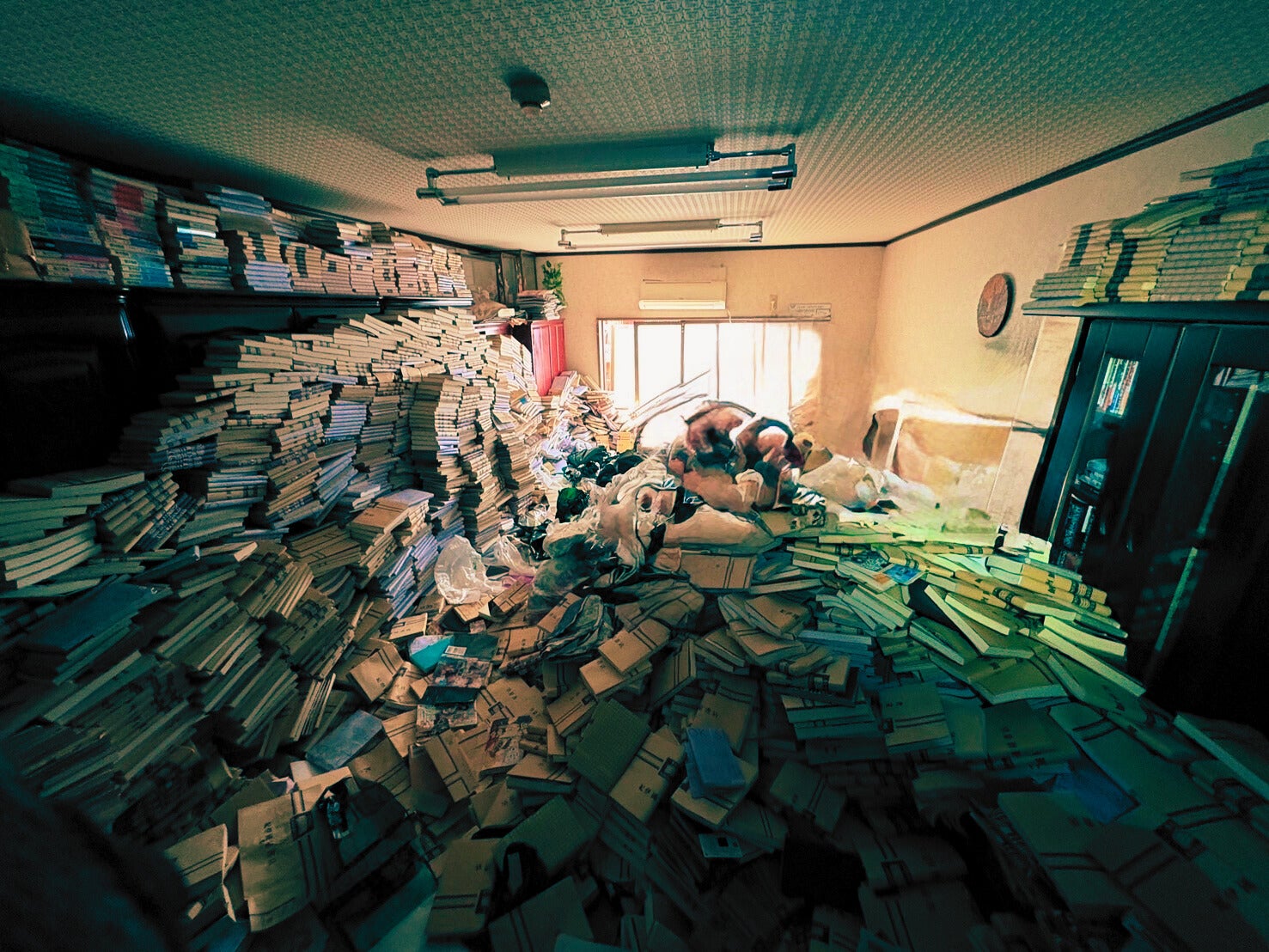 本だらけ!!しかもこの1室だけではありません。全部で8室。ここを掃除するところからが私たちの戦いでした。