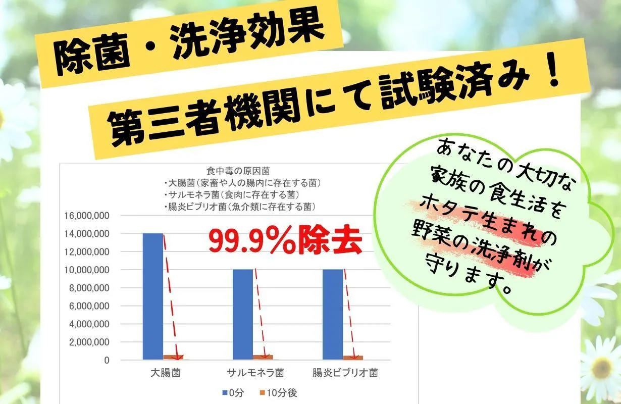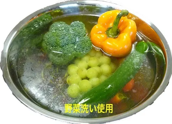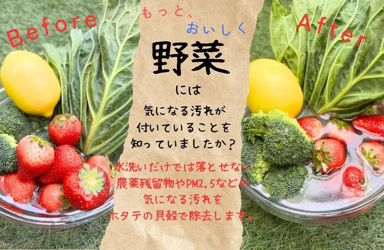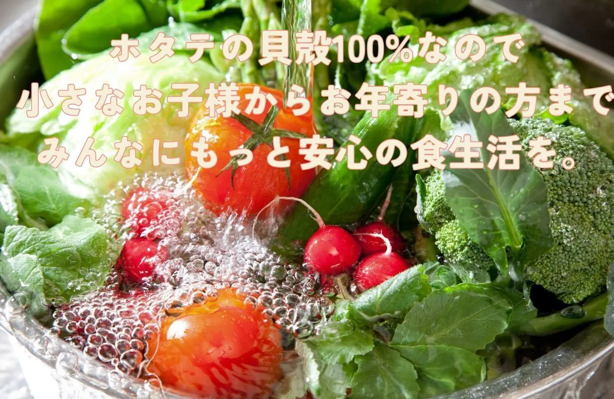 水洗いだけでは落とせない農薬残留物やPM2.5などの気になる汚れををホタテの貝殻で除去します。