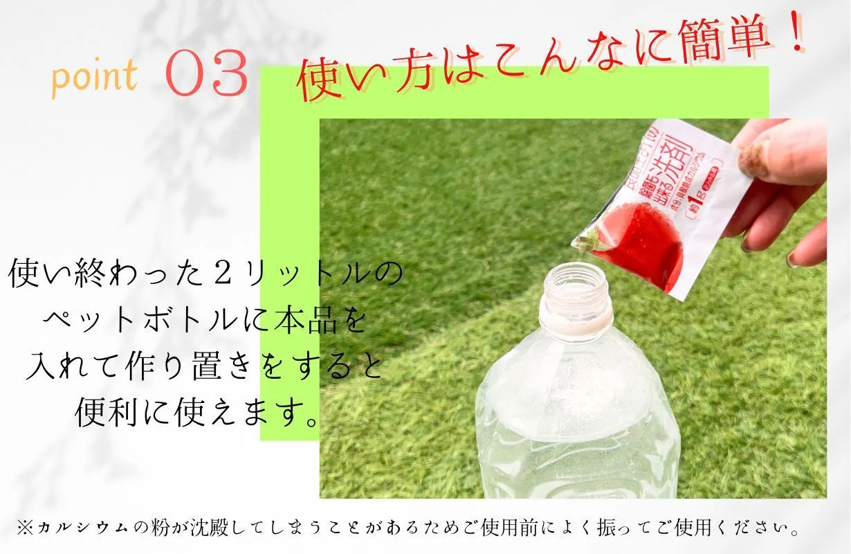 使い終わった2リットルのペットボトルに水道水と本品1包入れるだけ!
