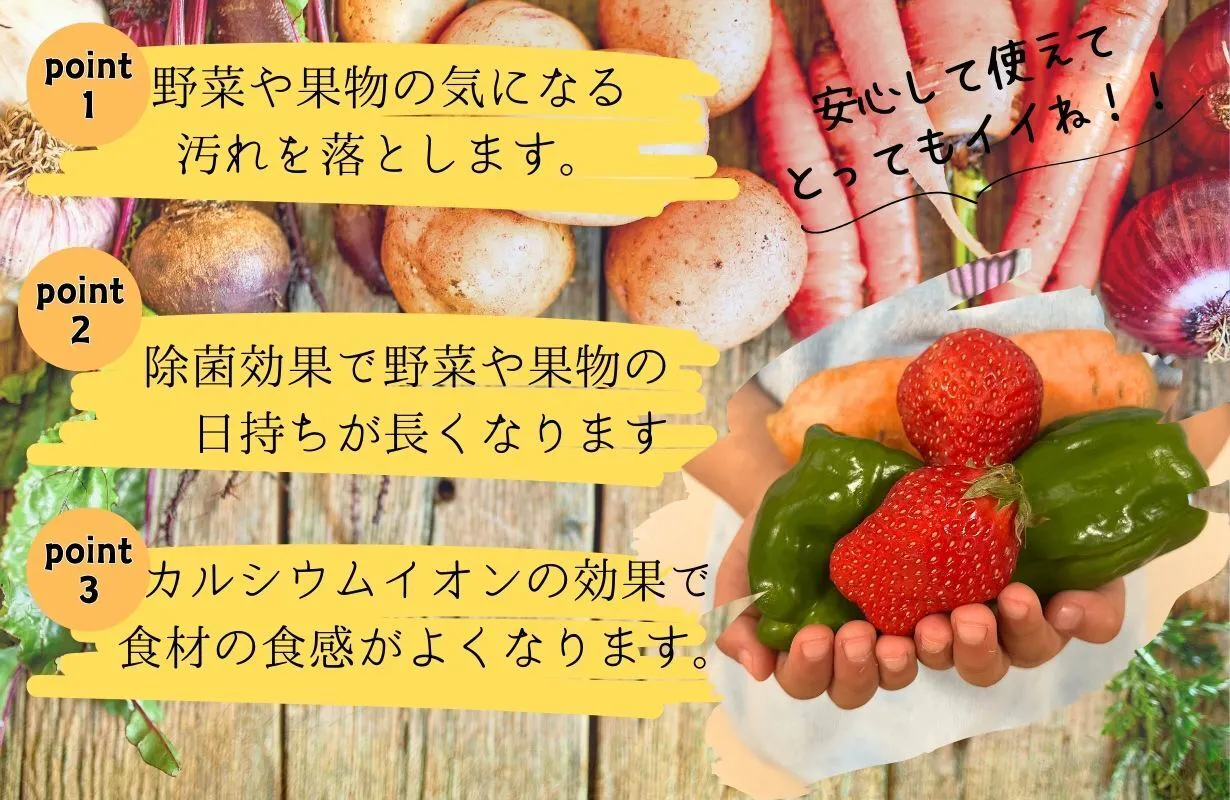 ・天然素材100%で天然のアルカリ水を発生さ汚れや菌を除去!