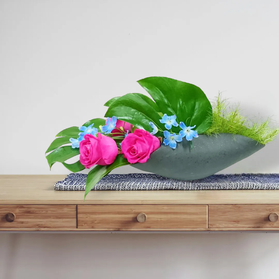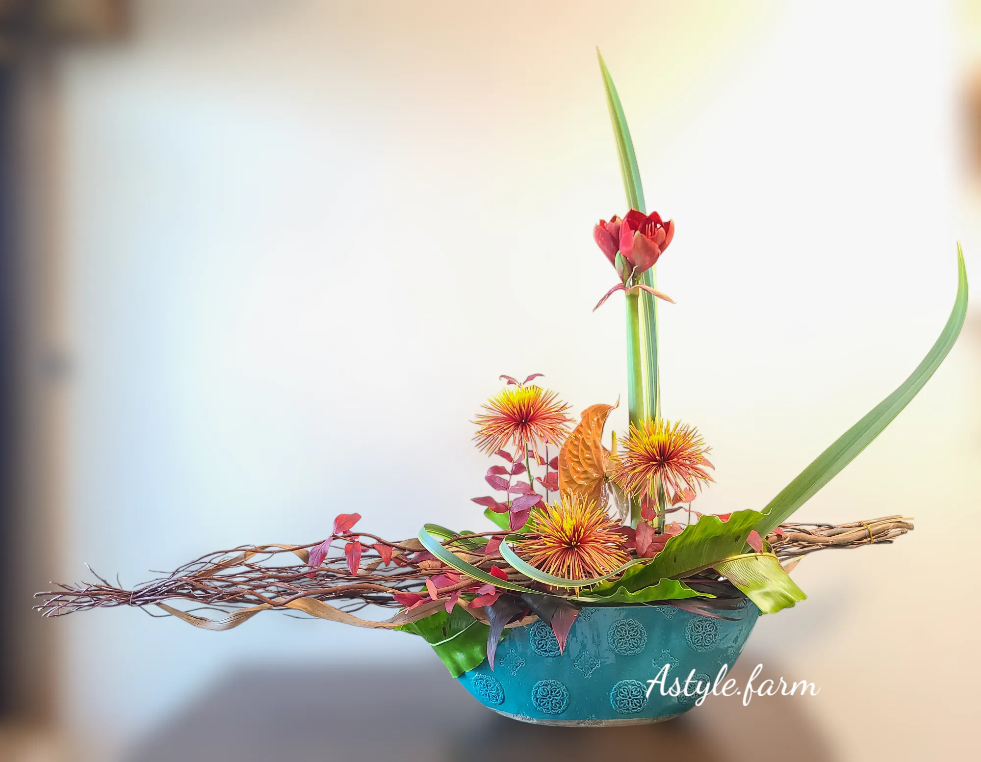 私はお花という美しい自然の産物を通して、フラワーデザイン作品を作り、人と人とを繋ぎ、そこに笑顔が生まれることを使命とし活動しています。お花だけでアレンジを作るのではなく日本人の美意識を組み込んだ枝や葉を多く使い花の魅力を引き出しています。
