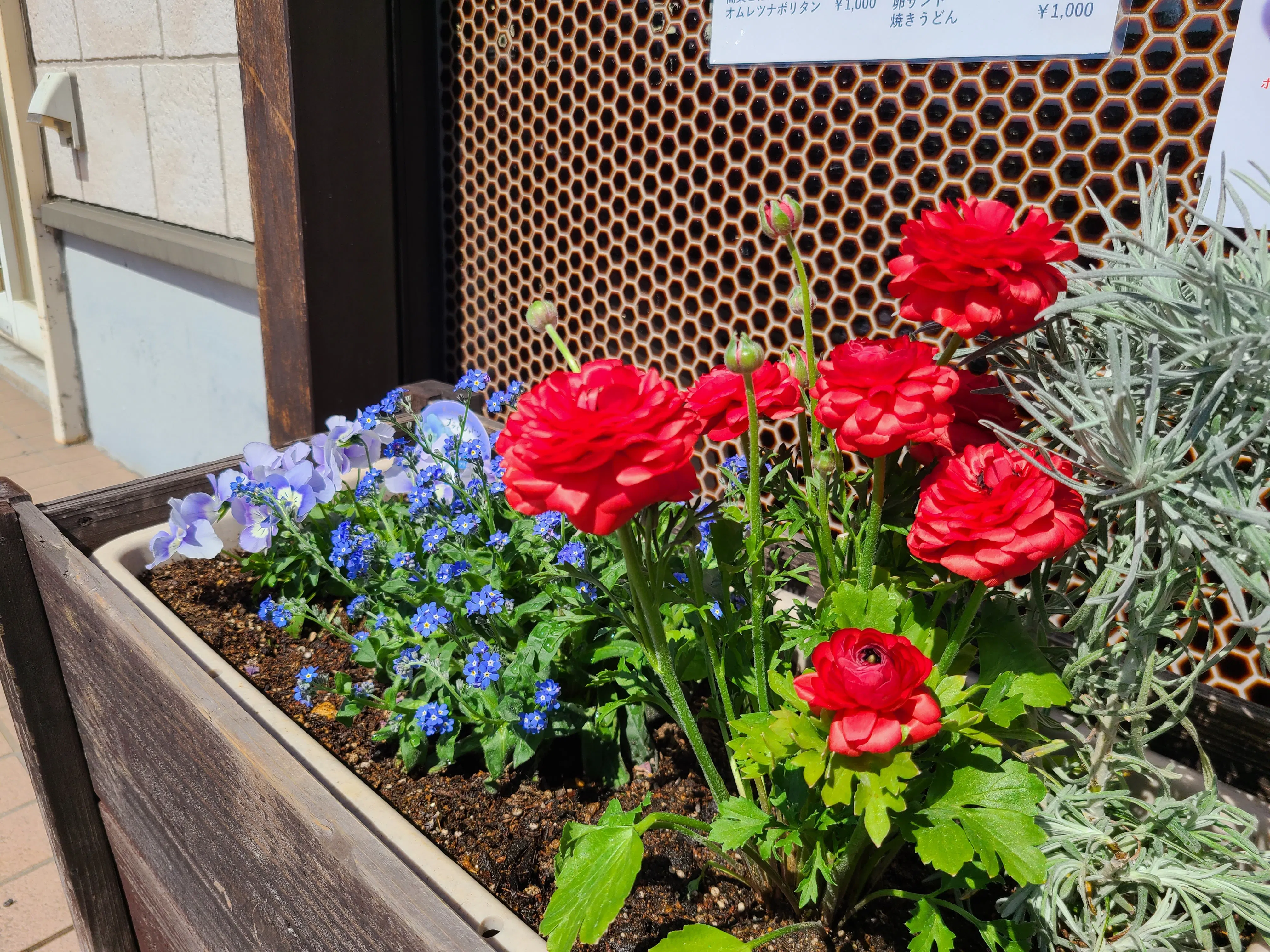 ↑近所のカフェの植え込み様子。季節の変わり目に花苗を植えさせていただいてます