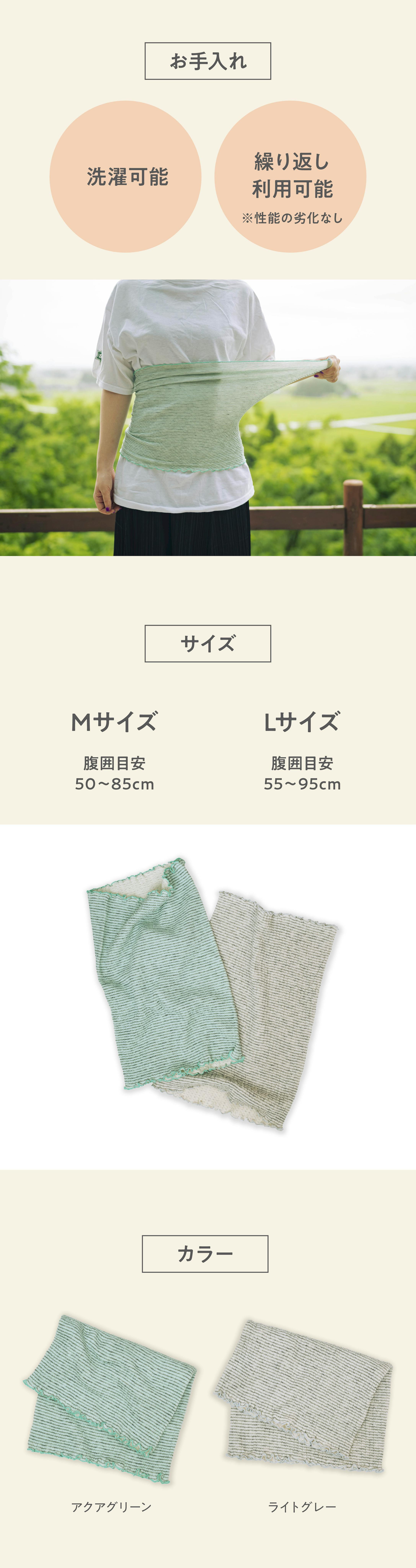 Lサイズ:横 23cm×縦 25cm 腹囲目安 55~95cm
