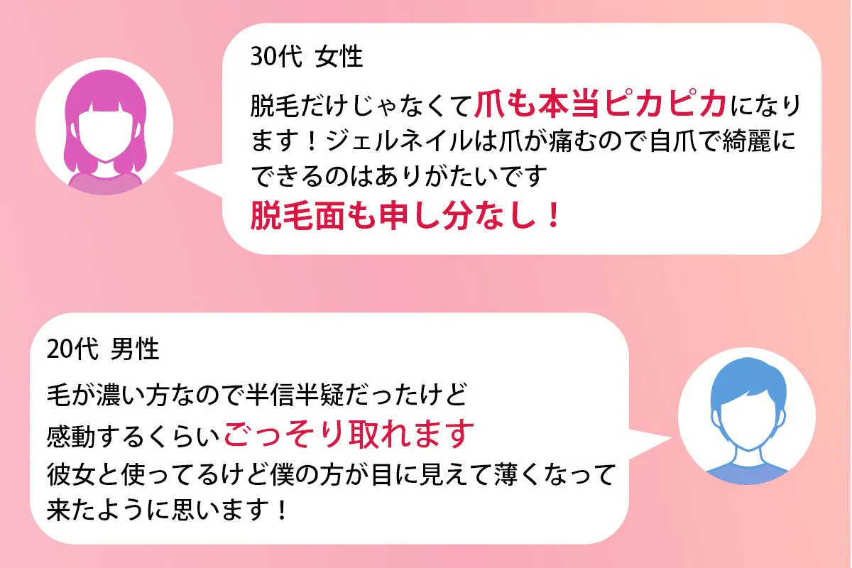 さらに古い角質も一緒に除去してくれるので、脱毛と同時に美肌ケアまでできてしまいます!