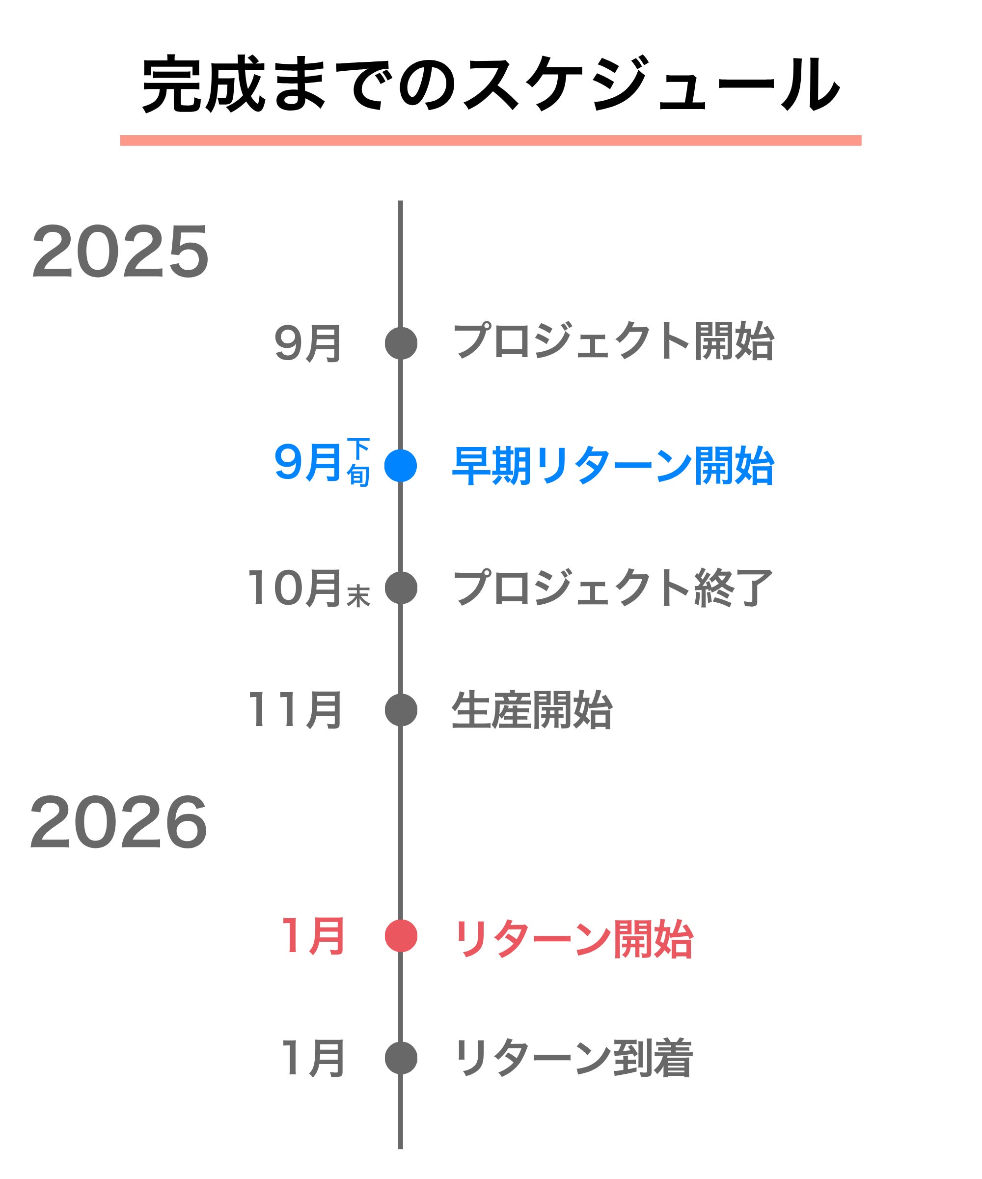 ※本文中に記載させていただいたスケジュールは、あくまでプロジェクト公開時点の予定です。クラウドファンディングの性質上、配送遅延のおそれがございます。