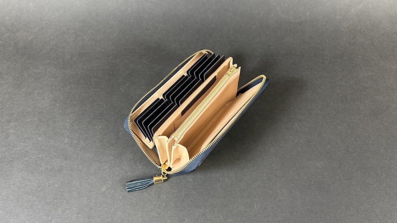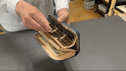 もちろん収納力も抜群で、マチをつけているので手を入れやすく、底から5mm上げることにより小銭の出し入れがよりスムーズになりました。