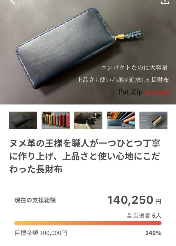 こんにちは!D.I.Y plus株式会社の高島です!「Pat.Zip Second」をご支援くださいました皆様、本当にありがとうございました!改めて御礼申し上げます。皆様のお力添えもあり、無事プロジェクト期間が終了しました。5名のサポーターの皆様にご支援していただき、本当に嬉しかったのと感謝でいっぱいです!ありがとうございます!できる限り皆様のお手元へ早くお届けできるよう尽力します!引き続きどうぞ宜しくお願い致します。D.I.Y plus株式会社高島