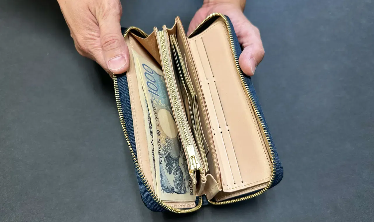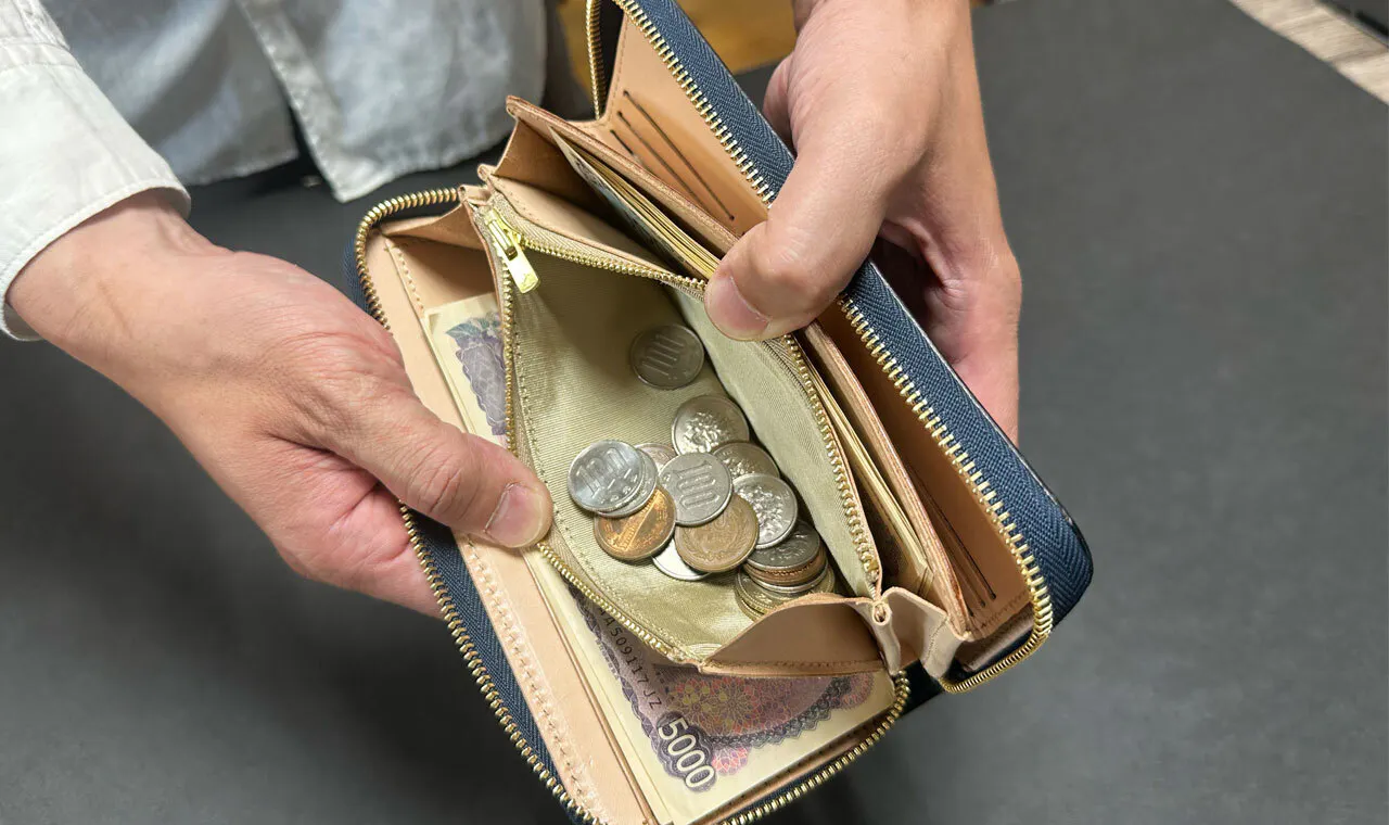 もちろん収納力も抜群で、マチをつけているので手を入れやすく、底から5mm上げることにより小銭の出し入れがよりスムーズになりました。
