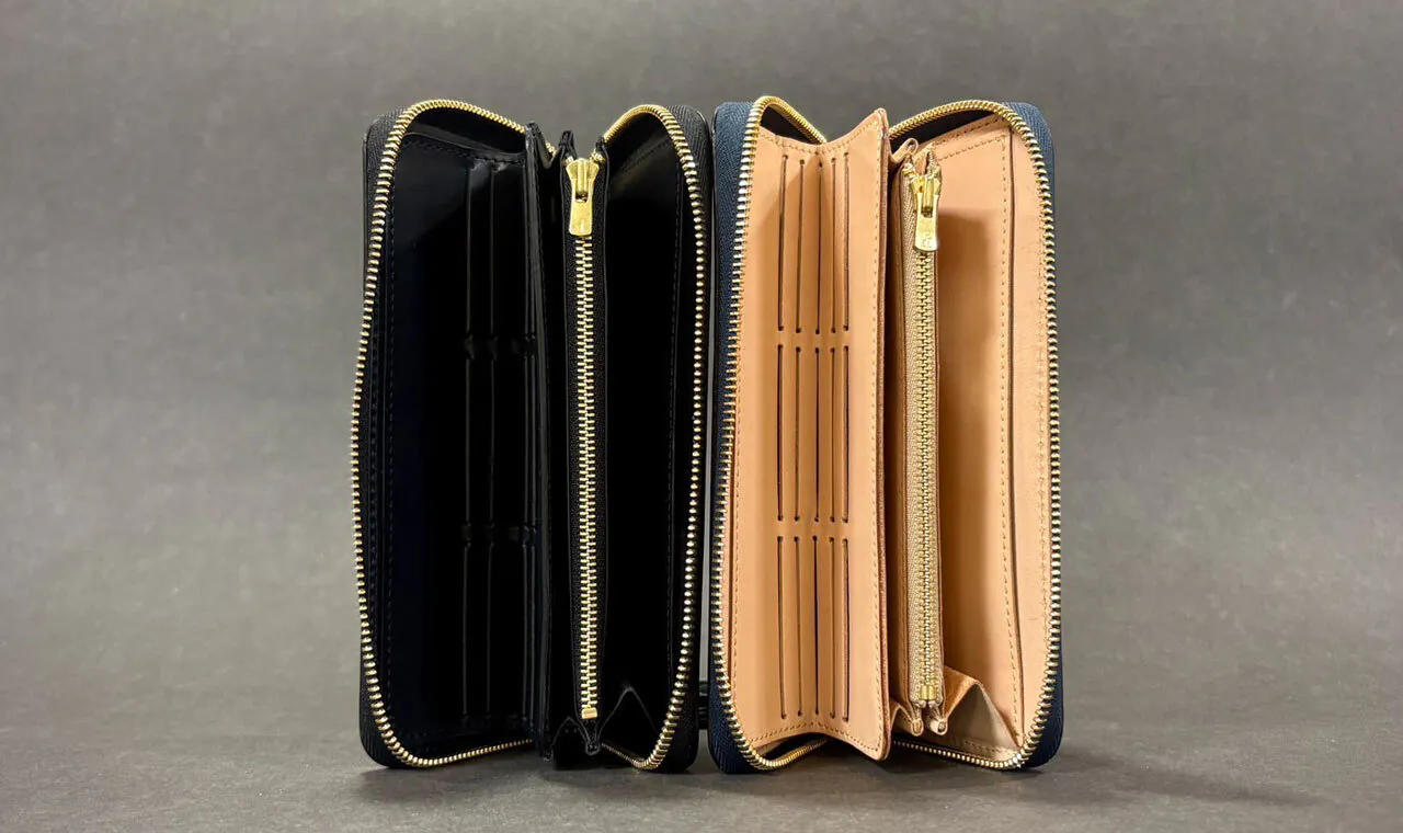Pat.Zip secondではあえて余裕をもたした設計し、芯材で補強し収納してこそ美しい財布を目指しました。