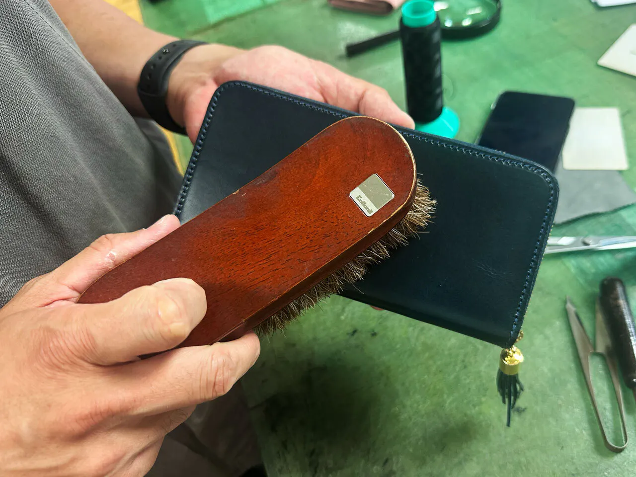 革の切断面(コバ)を黒く染める事で、使用後のくたびれた感を軽減します。