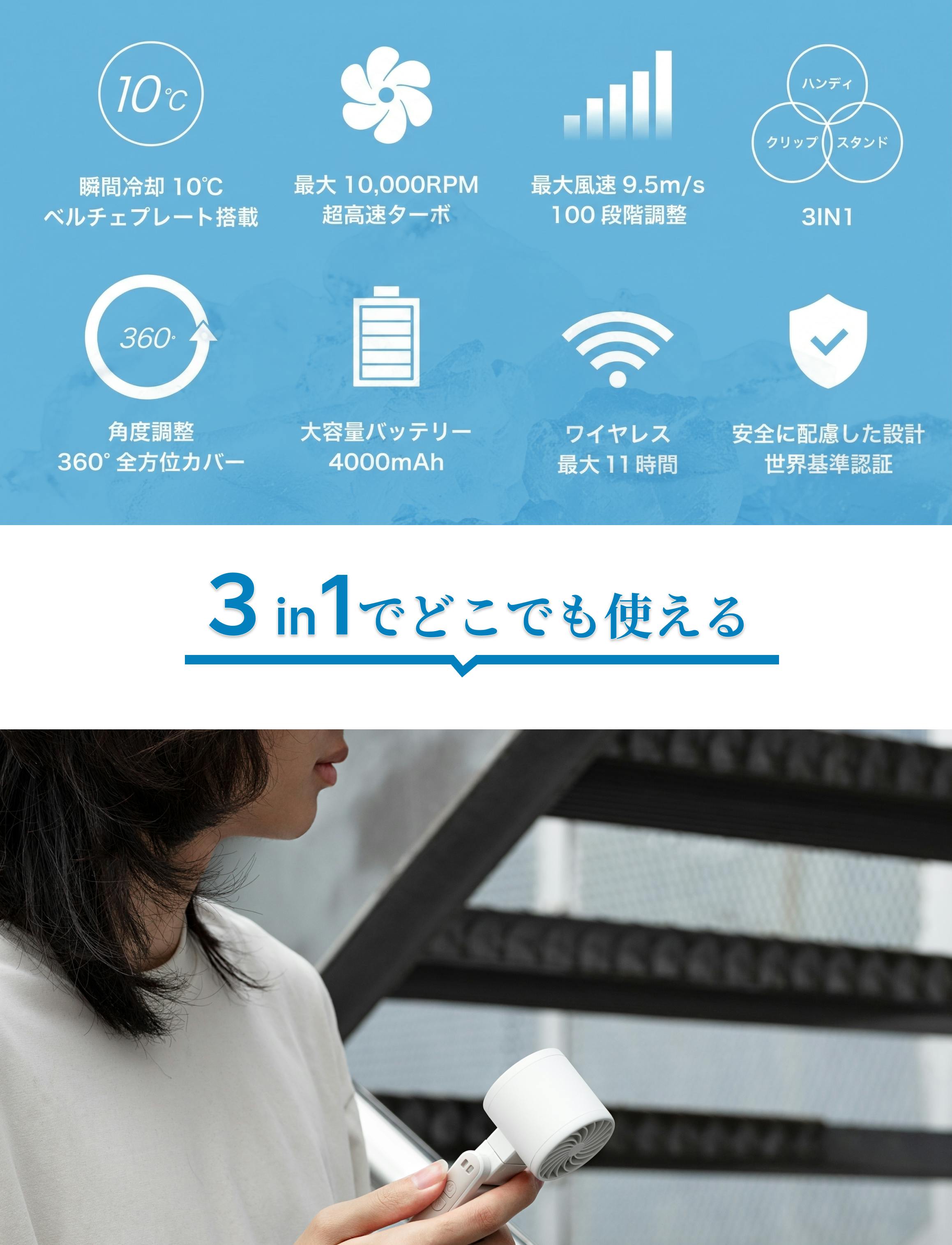 【一瞬で10℃の冷却体験】猛暑でも1日中快適に。爆冷ハイスペックハンディクーラー