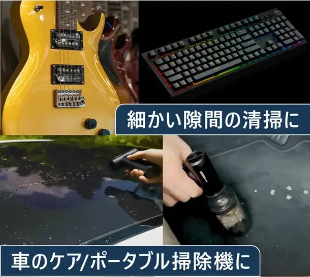 ZERA MAXの最大の強みのひとつは、細かい隙間の清掃が簡単にできる点です。キーボードの隙間、家具の隙間、エアコンのフィルターなど、目に見えないような場所にたまったホコリやゴミを吹き飛ばしたり、吸引したりできます。特に細かい場所の掃除には、専用のノズルが役立ちます。例えば、デスク周りやパソコンのキーボードにたまったホコリをエアダスターで吹き飛ばし、その後吸引機能を使ってしっかり吸い取ることで、簡単に清掃が完了します。これにより、日常的な掃除が非常に楽になります。