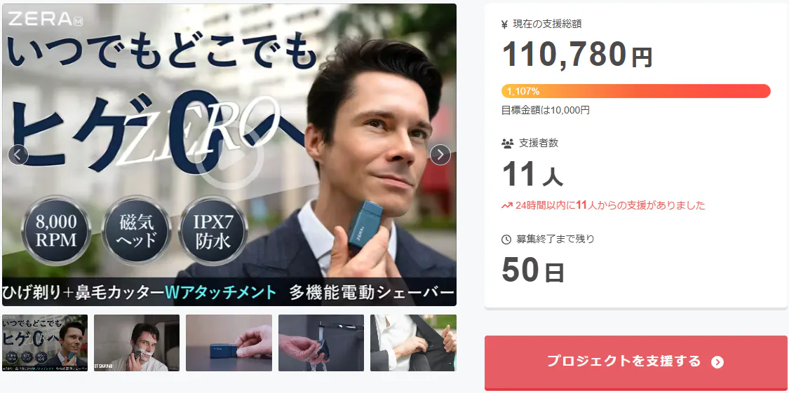 この度は「ヒゲ剃り+鼻毛ケアの2in1!防水電動シェーバー【ZERA M】」に支援頂き誠にありがとうございます!