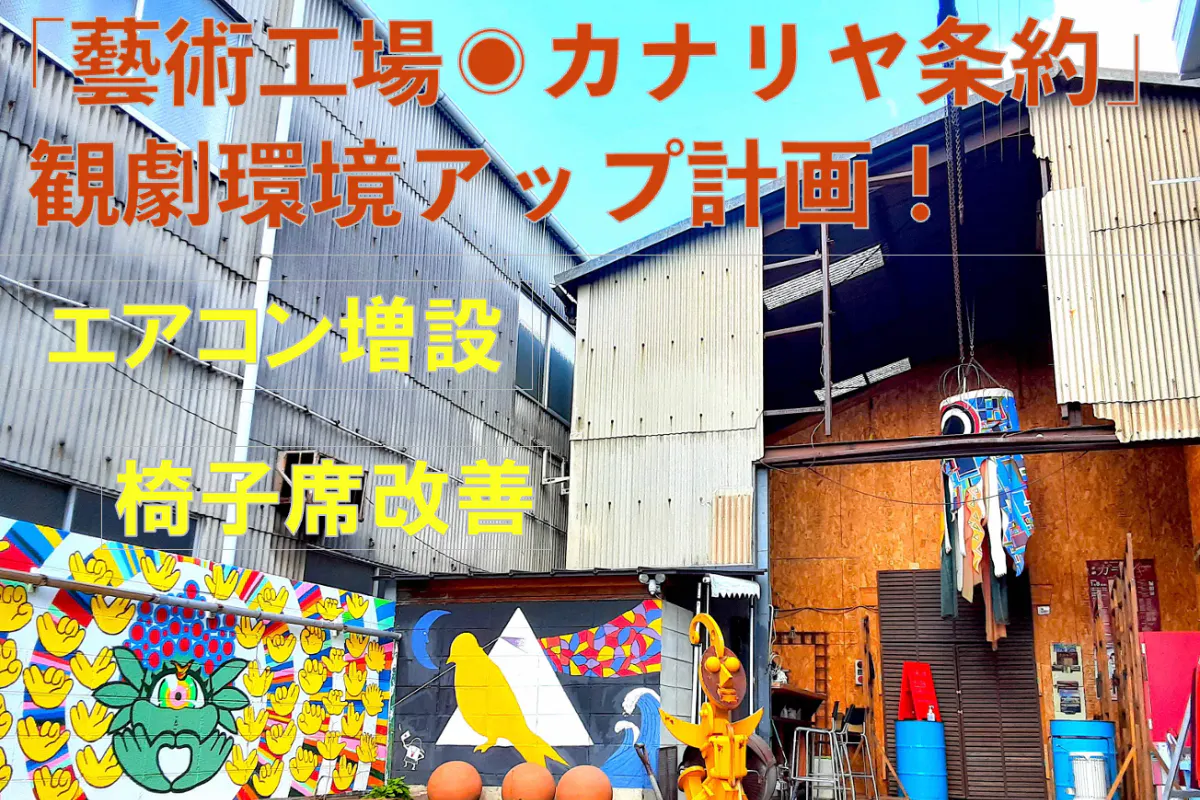 このプロジェクト目的は、アトリエ劇場「藝術工場◉カナリヤ条約」で作品をつくるとき、その作品を観るときの環境をもう少しだけ良くしたい、ということ。具体定にはエアコンの増設と客席の椅子の改善です。