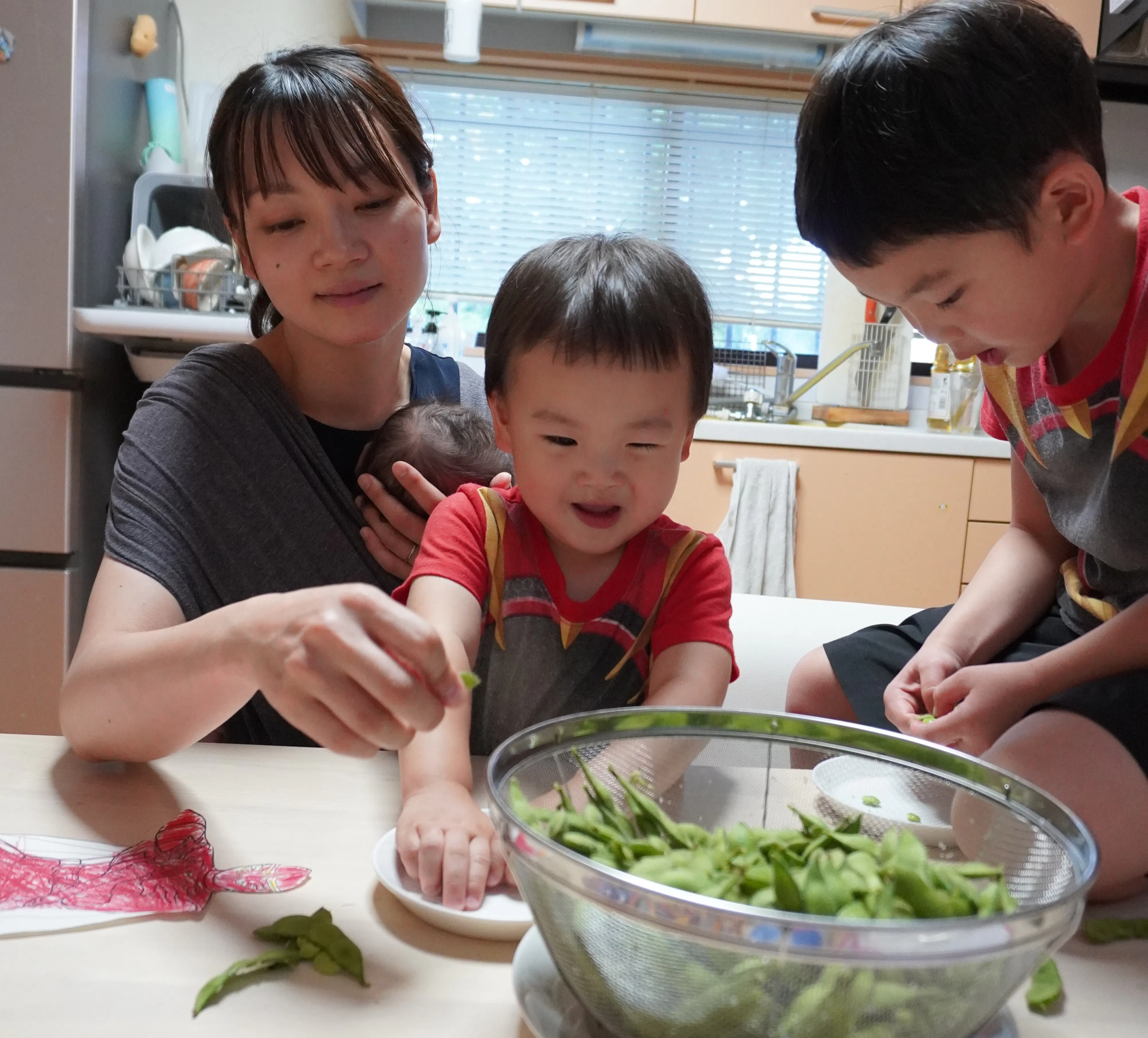 ご近所さんから頂いた枝豆が大好きな子ども達