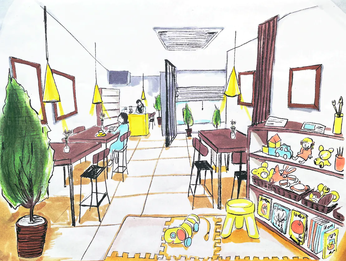 平日日中はママ達に使ってもらいながら、平日夕方は学生の宿題の場として。また、高校生には電車待ちの場として使ってもらいたい。