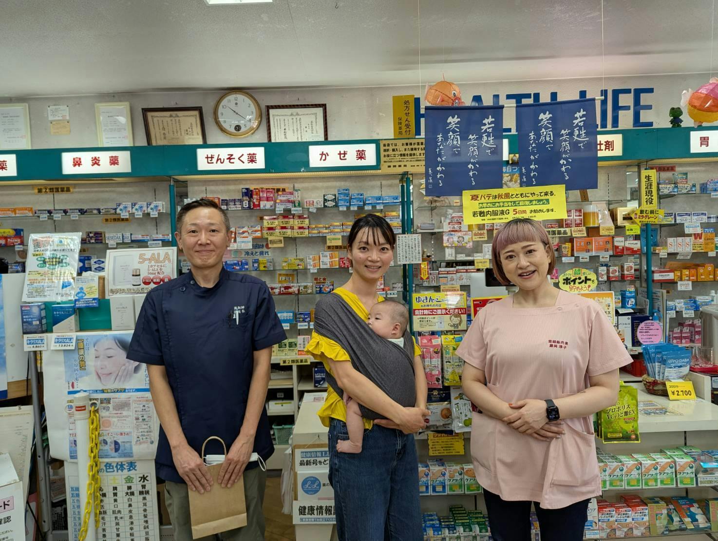 ※写真は商店街角のフジオカ薬局さまと。フジオカ薬局さまは本町商店街の中の唯一の薬局で、商店街歩いてて子どもが怪我したりしたら、駆け込み寺になると思います。マイベイスから徒歩30秒くらいです。写真掲載許可頂きありがとうございます!