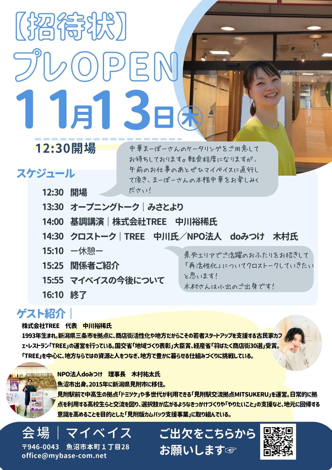 実はグランドオープンの10日前の11月13日(木)には、プレオープンイベントを開催しました!