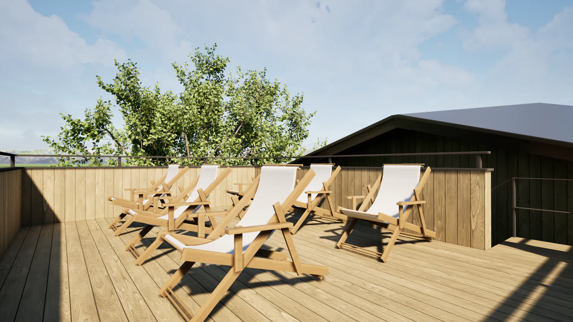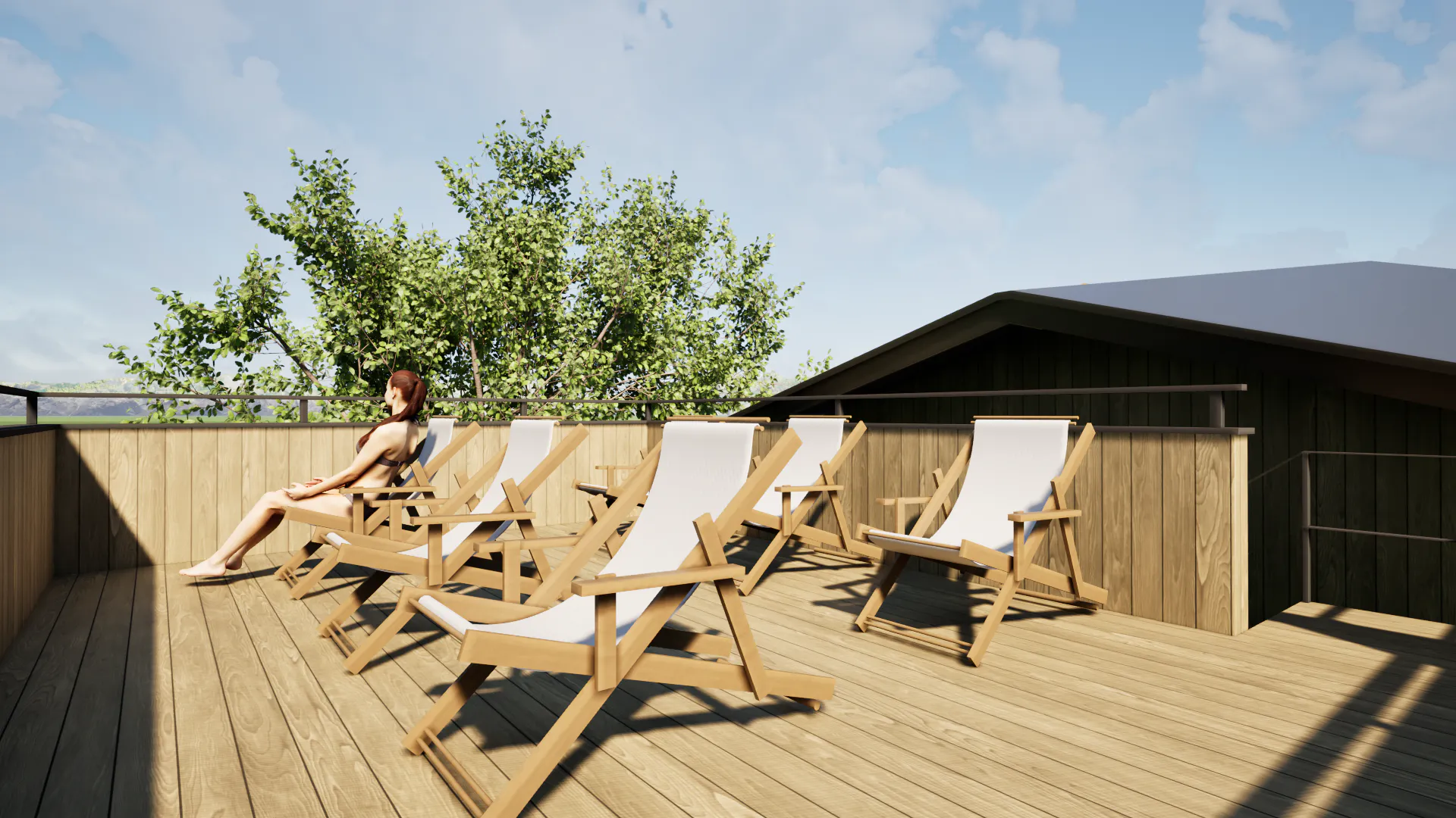 サウナと水風呂のあとは外気浴。施設の屋上にあるルーフトップエリアで、究極の「ととのう」体験を。360度自然に囲まれた場所で、心も体もリフレッシュできます。
