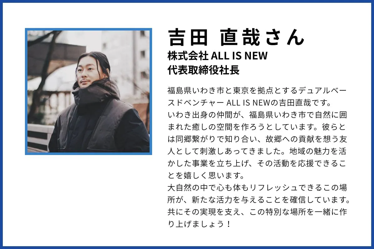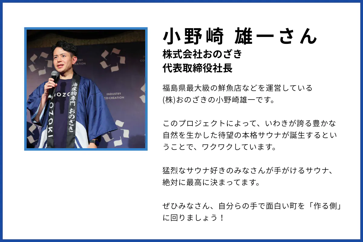 運営を通じてアウトドアサウナ×地方創生の可能性と手応えを実感し、今回念願だったいわきでのサウナプロジェクトに着手。「いわきを盛り上げたい!」が、ついに形になりそうです!!