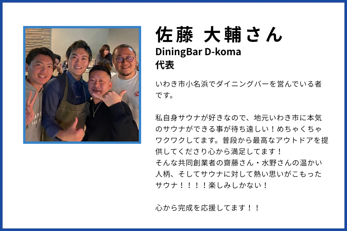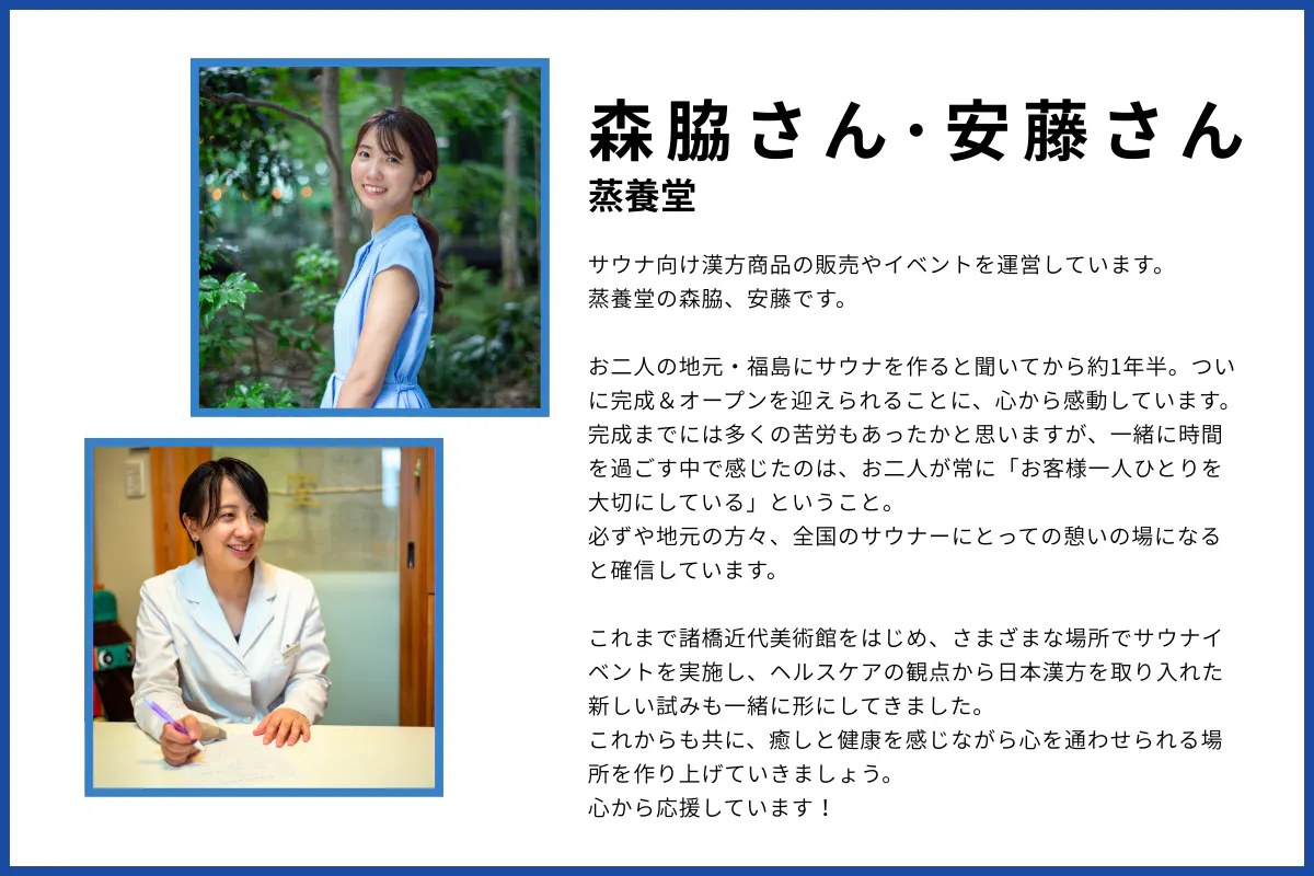 地元いわき市の様々な方の力を借りて、今回のサウナ施設はオープンします。