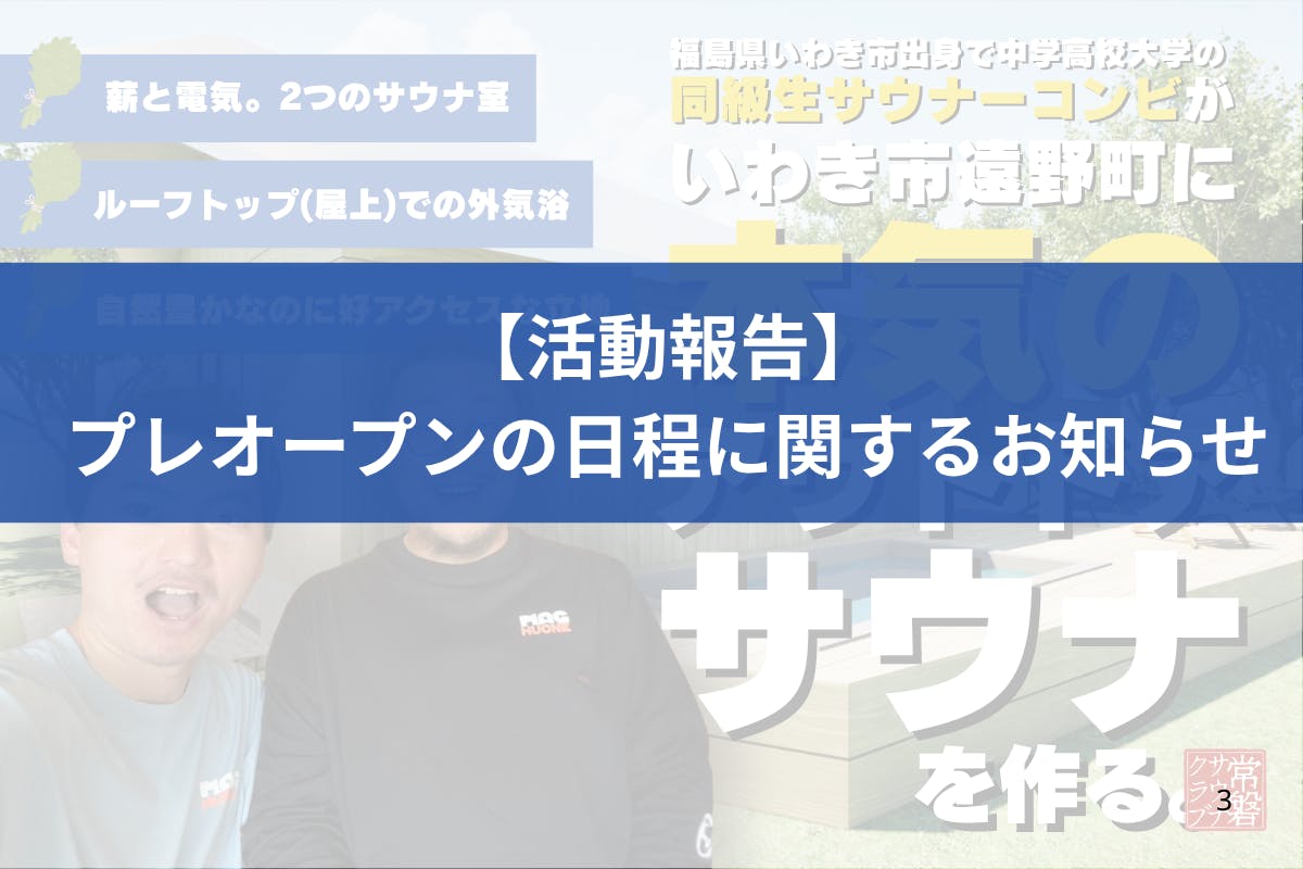 プレオープンの日程に関するお知らせ【常磐サウナクラブ水野 齋藤】