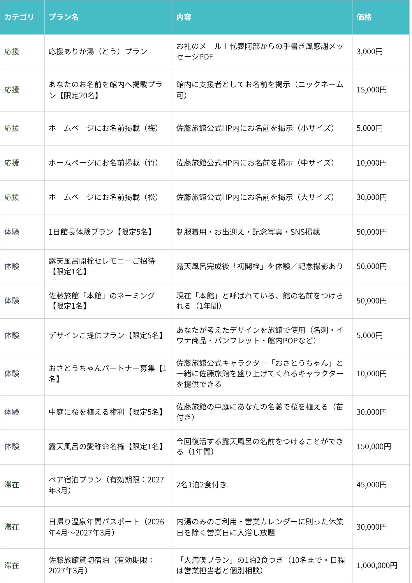 どのリターンを選んでいただいても、露天風呂復活につながります!
