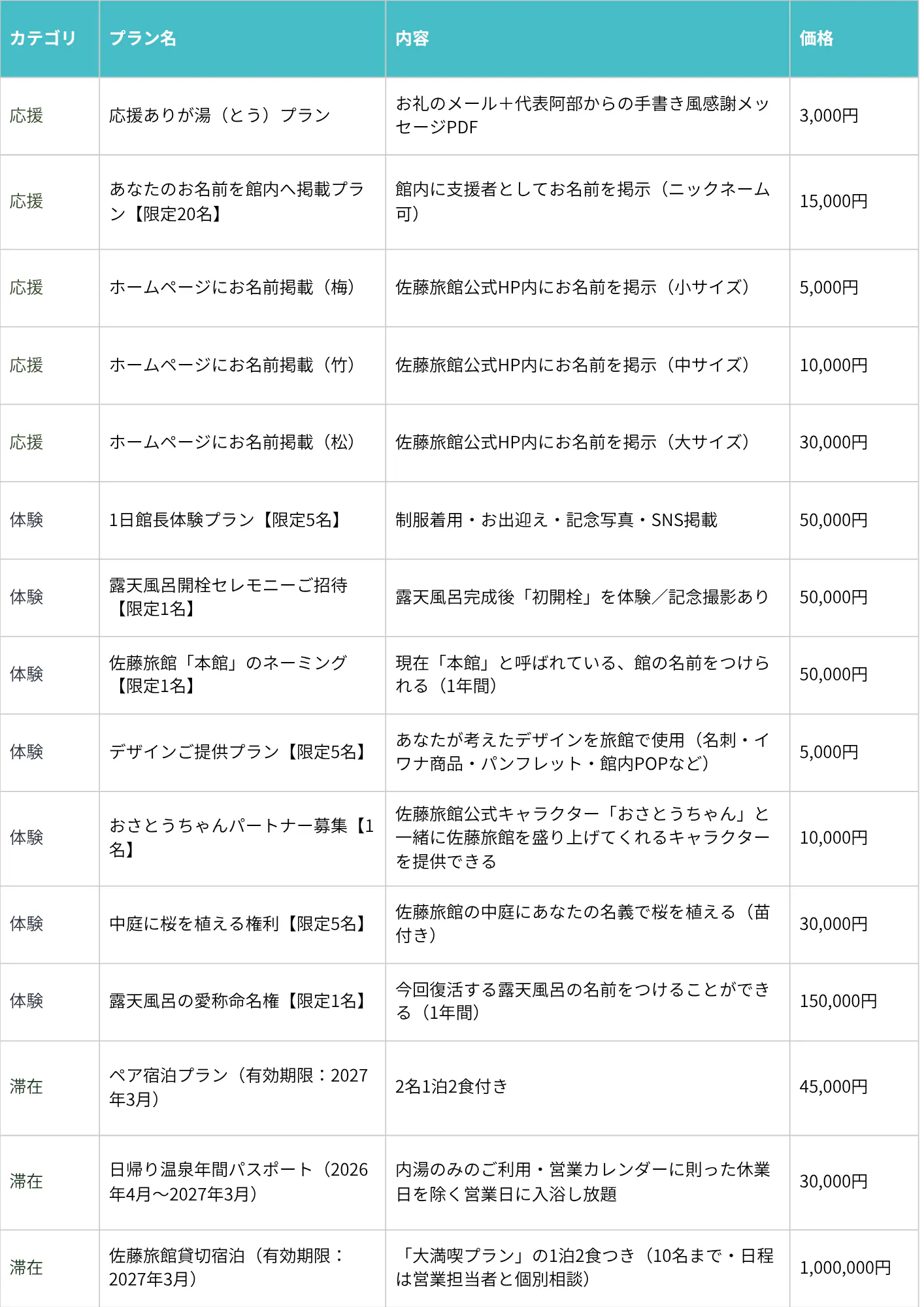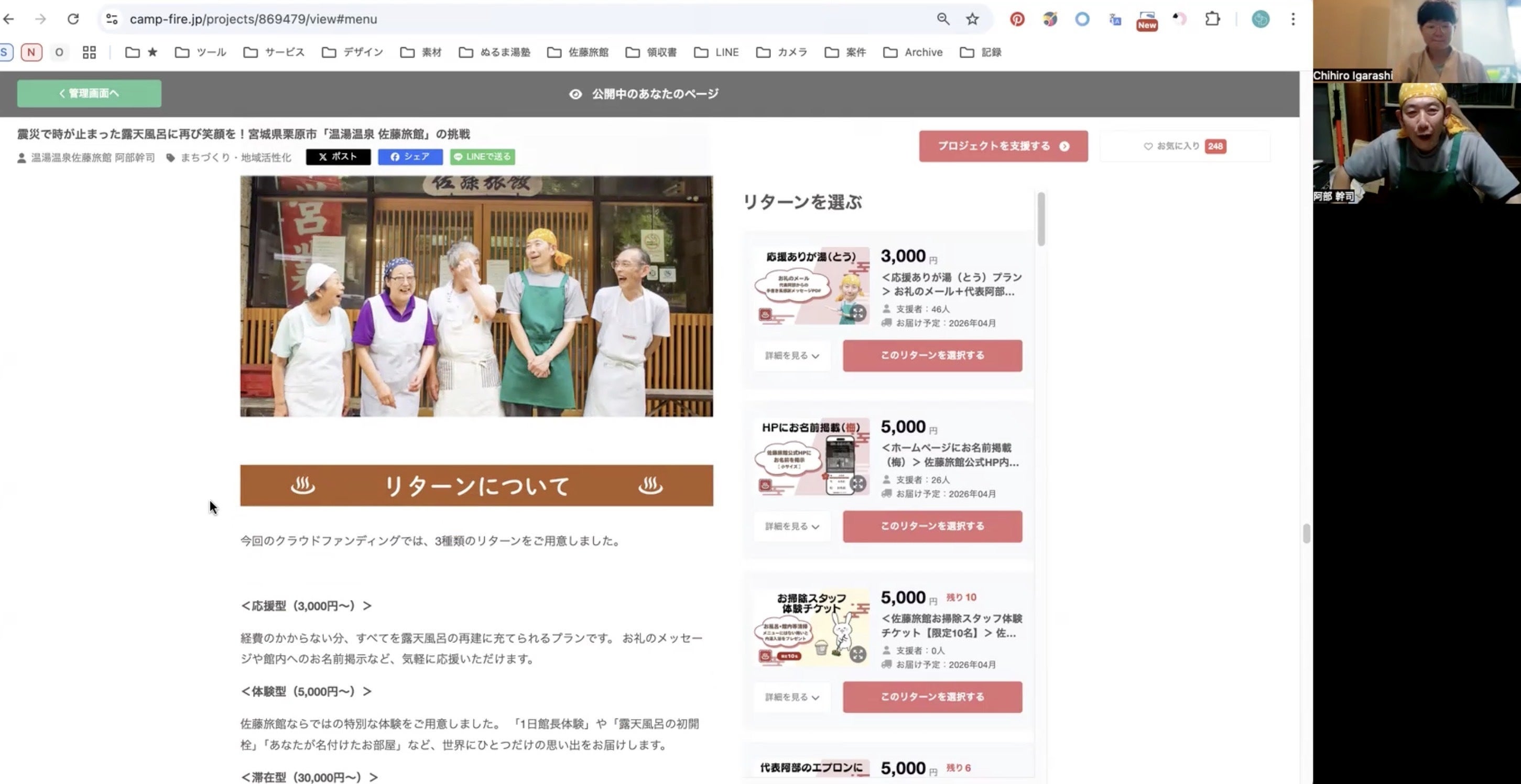 ・リターンの内容は、旅館の営業状況や天候、工事スケジュール等により変更・延期となる可能性があります。