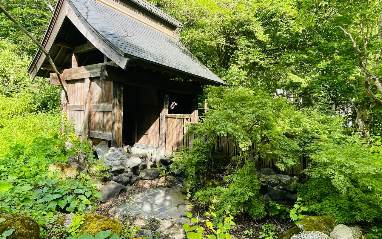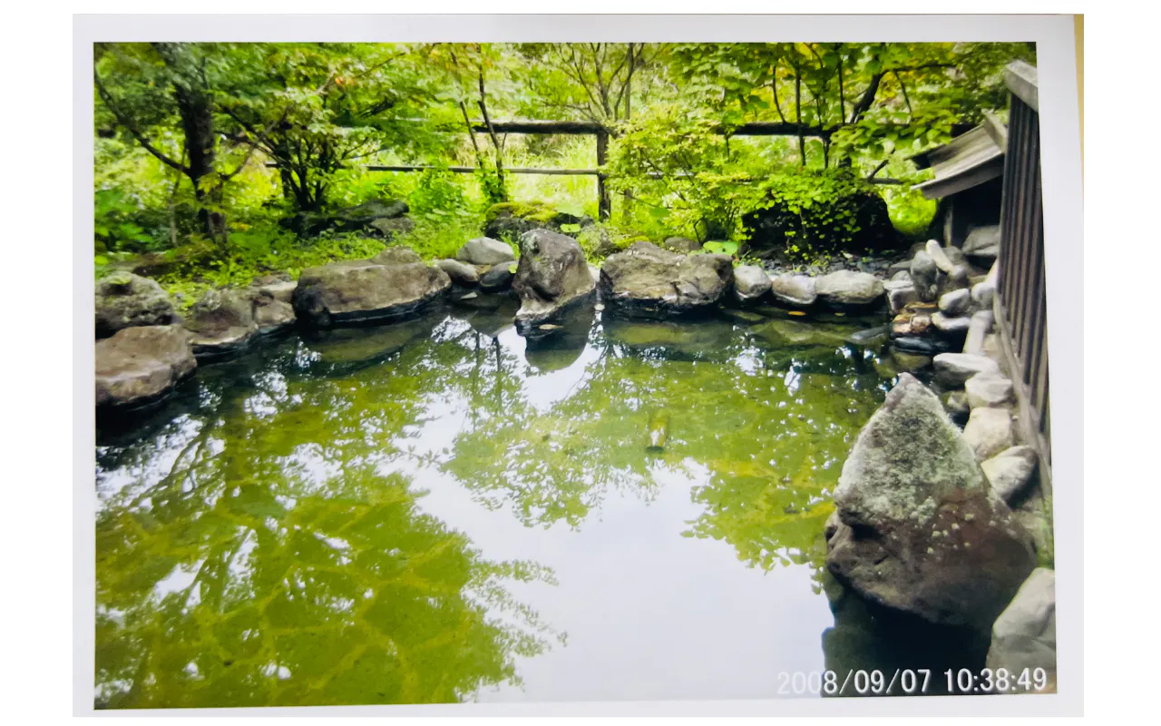 その中にある「佐藤旅館」の川に面した中庭には、今も美しい岩づくりの露天風呂が眠っています。