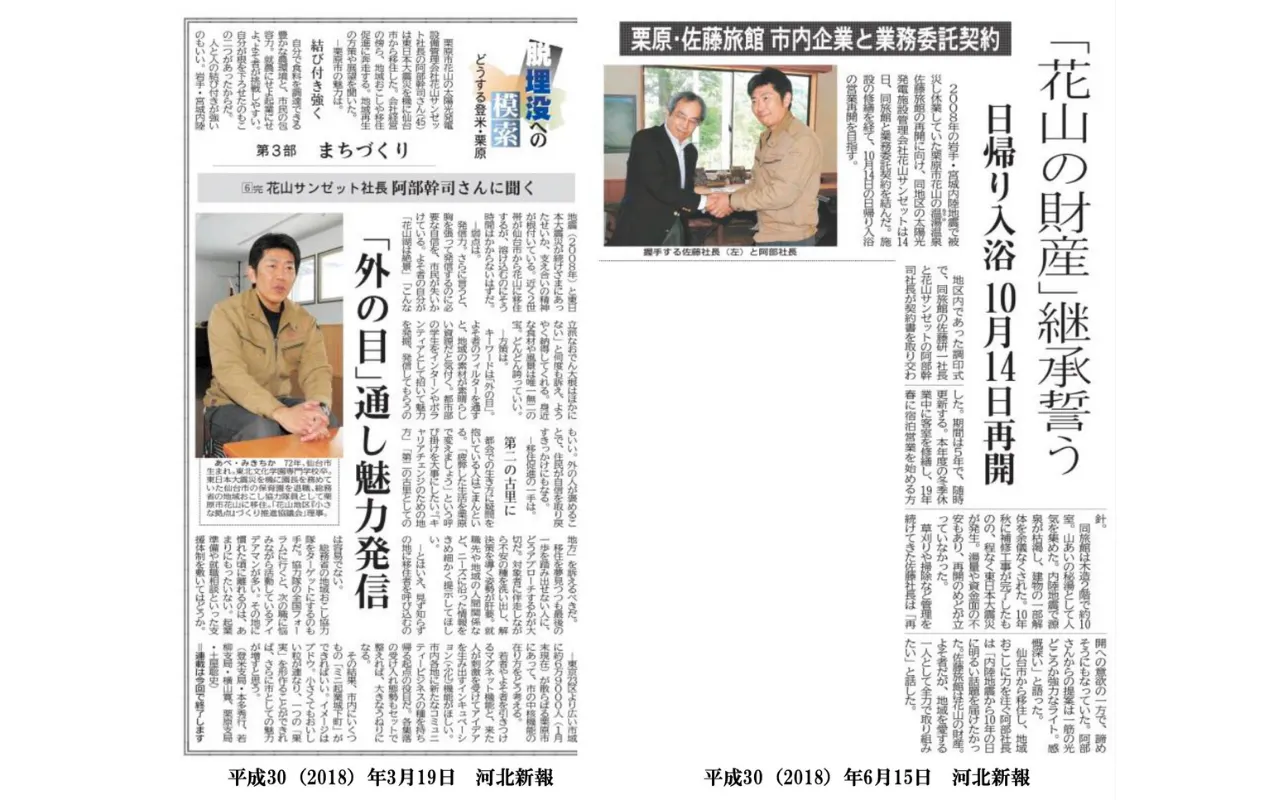佐藤旅館の継承が決まった際の新聞記事。河北新報様ご提供